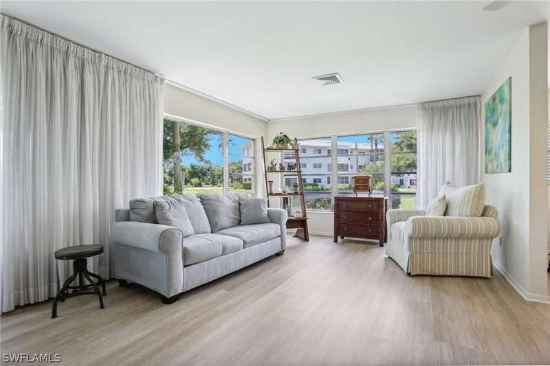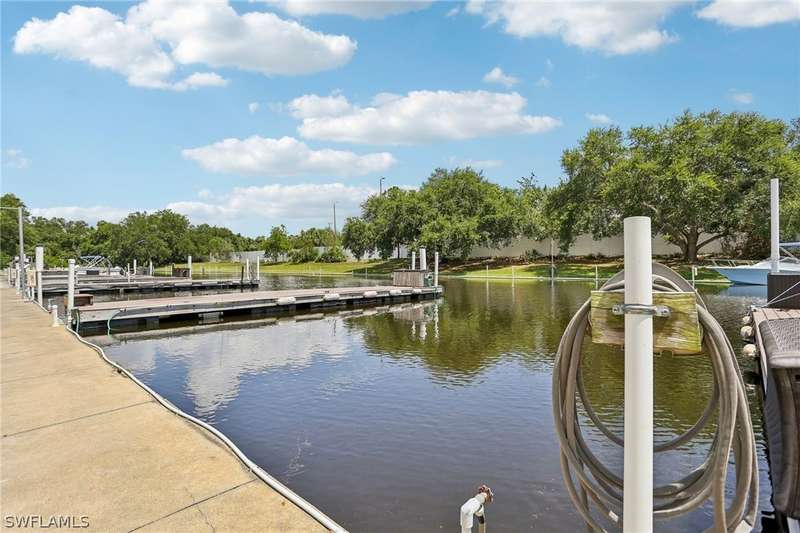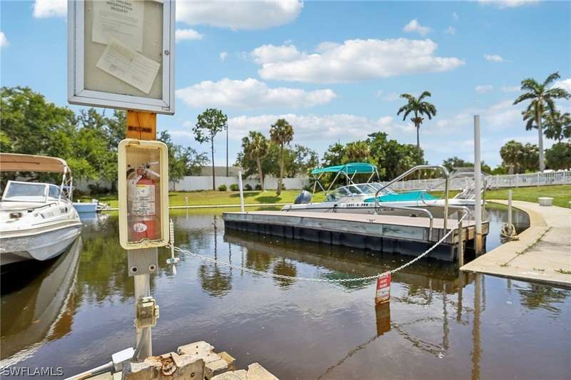 Welcome to your new home in a serene first-floor corner unit condo, perfectly situated in a tranquil 55+ community. This hidden gem offers an idyllic blend of comfort and convenience, featuring 2 bedrooms, 2 full bathrooms, and an array of amenities designed for an active and relaxed lifestyle. Bask in abundant natural light with stunning views of the canal from your spacious unit. Enjoy the fresh ambiance of new flooring throughout the unit, providing a contemporary and welcoming atmosphere. Take advantage of GULF access, complete with a boat ramp and optional boat dock leasing (subject to availability). Engage in a variety of recreational activities with shuffleboard courts, walking paths, and a heated pool, and join community events. Nestled just off Hancock Bridge Parkway, this condo offers easy access to Fort Myers' vibrant Downtown River District, known for its eclectic dining, chic boutiques, and captivating art galleries. Enjoy peace of mind with nearby medical facilities and a pharmacy. For travel enthusiasts, the location provides convenient access to RSW International and Punta Gorda Airport. Find all your essentials with convenience stores, including Publix, just a short distance away. Immerse yourself in the exquisitely landscaped community, where tranquility meets convenience. This corner unit condo offers a perfect blend of serene canal views, modern comforts, and an active lifestyle, making it an ideal choice for your next home. Discover the charm and convenience of this exceptional property today. This unit did not have any water damage from hurricane Ian!