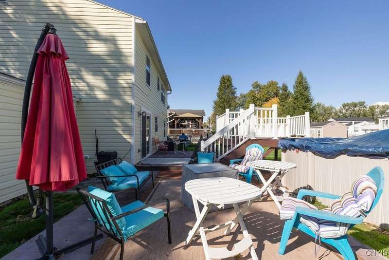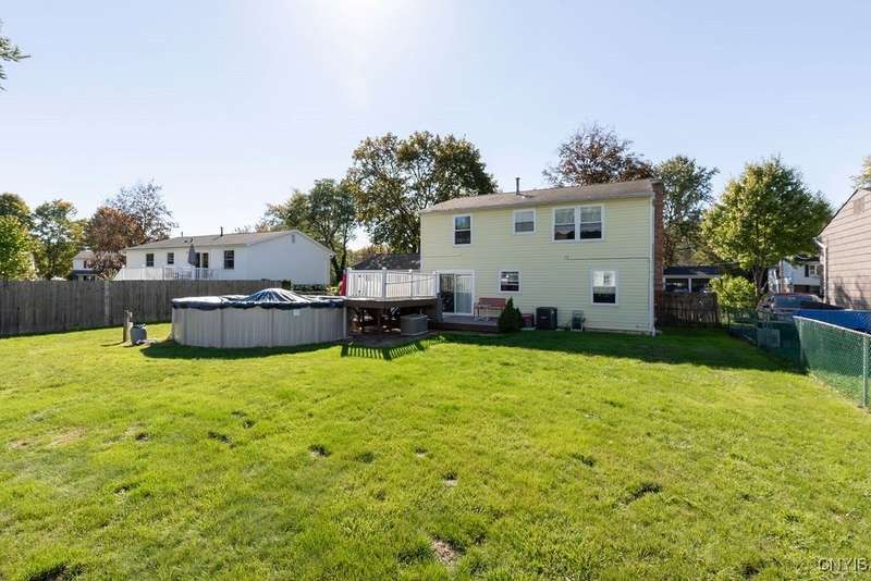 WELCOME TO 13 KINGMAN RD IN THE HEART OF LIVERPOOL! THIS CLASSIC COLONIAL HOME OFFERS 1792 SQFT OF COMFORTABLE LIVING WITH 4 SPACIOUS BEDROOMS AND 2.5 BATHS, PERFECT FOR THOSE SEEKING SPACE TO GROW OR ENTERTAIN. STEP INSIDE TO FIND FORMAL DINING ROOM IDEAL FOR GATHERINGS, AND A COZY WOOD-BURNING FIREPLACE IN THE LIVING ROOM-YOUR GO-TO SPOT FOR WINTER NIGHTS. THE PRIMARY BEDROOM FEATURES A PRIVATE EN-SUITE AND YOUR OWN BATHROOM. MAJOR MECHANICALS HAVE BEEN THOUGHTFULLY UPDATED WITH NEW FURNACE AND CENTRAL A/C (1 YEAR OLD), ENSURING COMFORT AND EFFICIENCY YEAR-ROUND. THE PARTIALLY FINISHED BASEMENT PROVIDES BONUS LIVING OR RECREATION SPACE, WHILE THE FULLY FENCED BACKYARD IS READY FOR OUTDOOR FUN. ENJOY SUMMERS BY THE ABOVE-GROUND POOL, GRILL ON THE DECK AND ENJOY. CONVENIENTLY LOCATED NEAR SHOPPING, SCHOOLS, AND HIGHWAYS-THIS WELL-CARED FOR HOME BLENDS CHARACTER WITH MODERN UPDATES. DON'T MISS YOUR CHANCE TO MAKE IT YOURS!