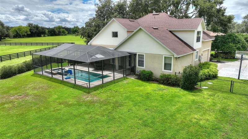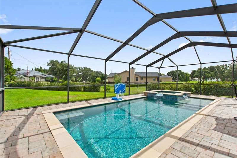 Stunning 5-Bed, 3-Bath Custom-Built Pool Home perfectly positioned on a lush .65-acre lot. Located in a small neighborhood of custom homes on large lots, this is a prime location with easy access to Winter Haven, Lakeland, I-4, The Polk Parkway, and beyond! High-end features throughout, towering ceilings, and a HUGE BONUS/MEDIA ROOM make this the perfect place to call home. Situated at the end of a cul-de-sac, the home is set back from the street for increased privacy, while the extended curved driveway and mature oak trees, paired with the home's striking design, create exceptional curb appeal. The front porch incorporates a large paver patio with built-in seating and fire pit - the perfect place to enjoy a beautiful Florida evening. Upon entering the home you're welcomed by soaring ceilings and a warm, inviting color palette. A versatile flex room off the entry offers endless possibilities - whether for formal living, dining, or even a home office. The living area showcases beautiful stone work, custom cabinetry and french doors that lead to the screen pool deck and lanai. The kitchen is a chef's dream, contemporary Maple cabinetry is highlighted by a splash of color from the distinctive backsplash - an area rich with character and charm. The kitchen is also open to living and dining area, and open the doors to the pool deck to create the perfect place for entertaining. The spacious primary bedroom, conveniently located on the first floor, features a large walk-in closet and an en-suite bathroom with a dual vanity, beautifully tiled shower, and large garden tub. Two of the guest bedrooms are located on the first floor, as well as a guest bathroom easily accessible from the main living area. The second floor has two very large guest bedrooms and a guest bathroom with a trendy design. An oversized media/bonus room upstairs is great for a play room, theatre, office, 6th bedroom, or so much more - the possibilities here are endless! A walk-out attic space upstairs is a great storage space for holiday d?cor or other personal items that would normally take up valuable space in the garage. The stunning SALT WATER POOL, built in 2016, boasts a modern design and is complete with a spa, sun-shelf, propane heat, LED lighting, a screen enclosed paver patio, and covered seating area. The huge back yard is FULLY FENCED, adding another space for outdoor enjoyment! Additionally, a whole home water filtration and softener system adds yet another high-end amenity. This house has it all, character, high-end finishes, a beautiful pool, outstanding back yard, and more. Schedule your private showing today!