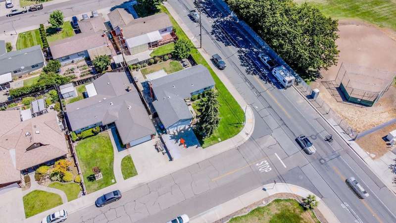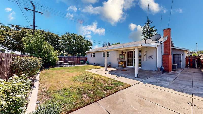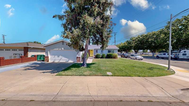 Welcome to this beautifully remodeled 3-bedroom, 2-bath home with a 2-car garage located in the highly desirable Vinewood & Mills neighborhood of Loveable, Livable Lodi. You'll know you're home when you spot the cheerful yellow front door, inviting you into a stylish, turnkey property where everything has been updated in 2021. This home sits on a large corner lot at Mills Avenue and Jerry Lane with no neighbors on one side, offering extra privacy and space. The beautiful backyard includes a covered patio, perfect for relaxing or entertaining.