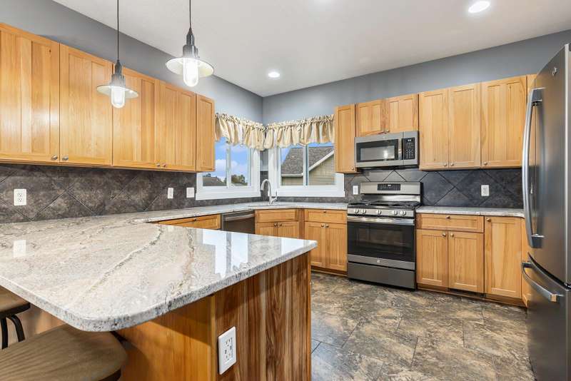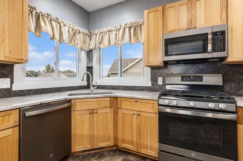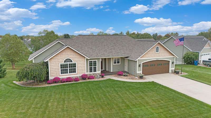 This one is a show stopper! Immaculate condition with upgrades everywhere! Gorgeous hardwood floors, hickory cabinets, granite and quartz countertops, and manicured landscaping to name a few. The Primary bedroom has vaulted ceilings, an ensuite bathroom featuring a jetted tub and tiled shower, and a large walk in closet with custom shelving. The kitchen is highlighted with 3 year old matching slate appliances and an abundance of storage. The main living area has vaulted ceilings and features a gas fireplace with a floor to ceiling stone surround. Unwind in the walk out basement that features a wet bar and mini fridge and plenty of space to entertain. As if that isn't enough, don't forget to relax on your covered composite deck overlooking your spacious backyard. This home is completely turn key! The roof, furnace, a/c, water heater and appliances are all new in the last 3-4 years. Don't miss the beauty! Schedule your showing today!
