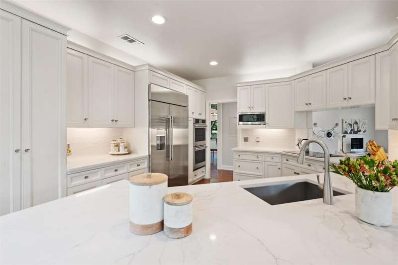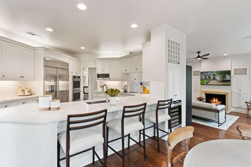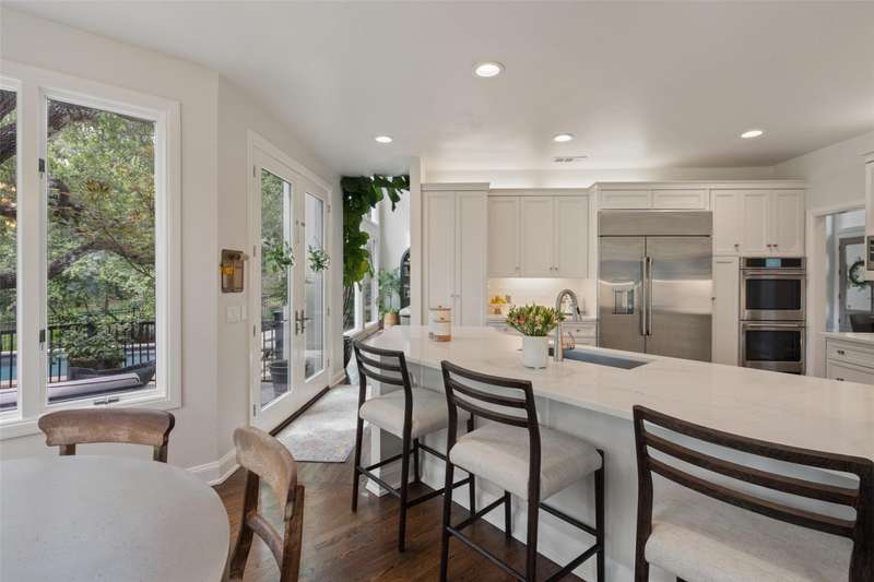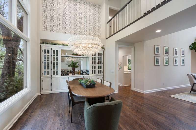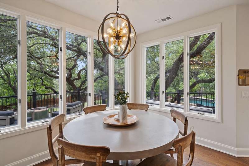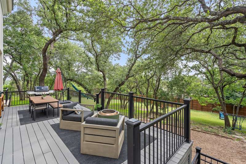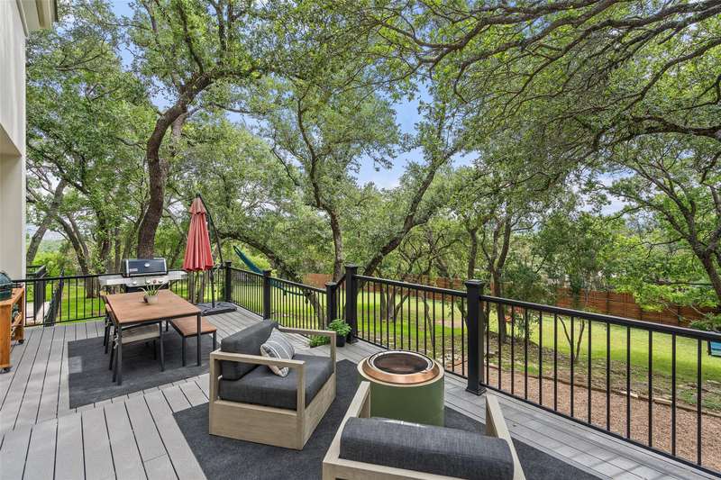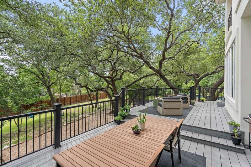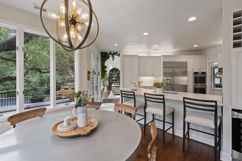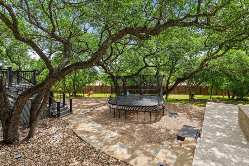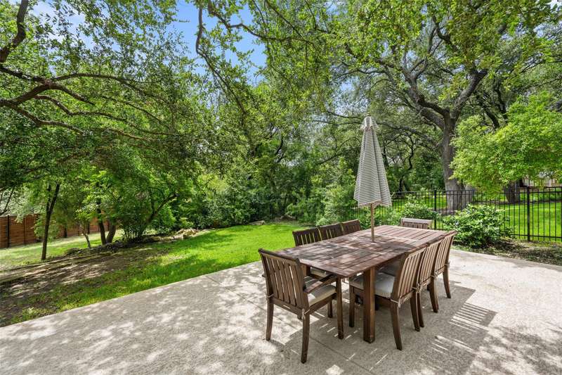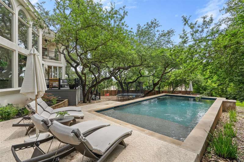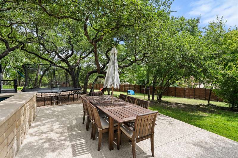 And when the Texas summer rolls in, the pool becomes the centerpiece of your backyard oasis. With ample lawn space for kids and pets to run free, plus a shaded dining area beneath a canopy of trees, this outdoor retreat is as functional as it is picturesque.