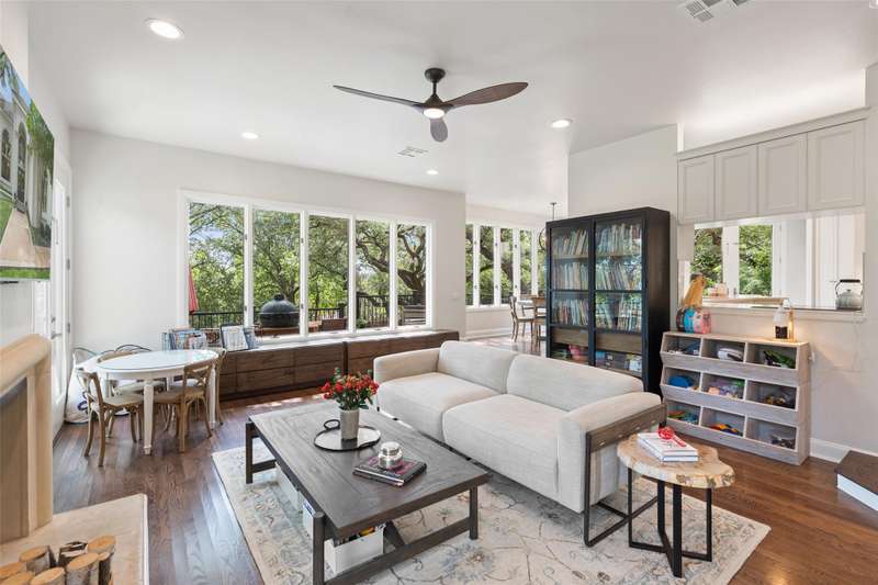 Step inside and feel the warmth of natural light streaming through floor-to-ceiling windows, creating an open and inviting atmosphere. Thoughtfully designed with two spacious living areas, a central kitchen built for entertaining, and seamless indoor-outdoor flow, this home is perfect for hosting. Multiple doors lead to a generous deck and patio, setting the stage for effortless outdoor entertaining.