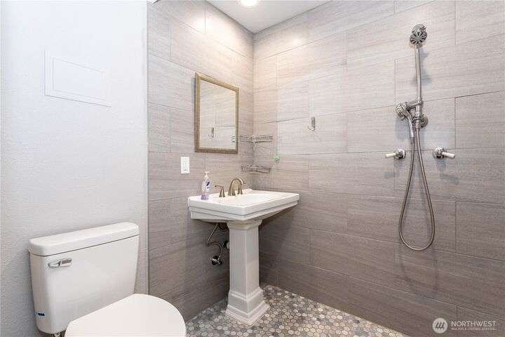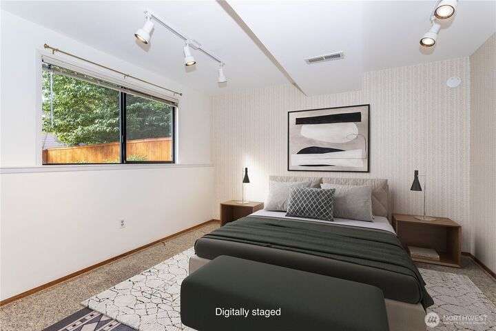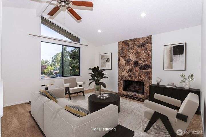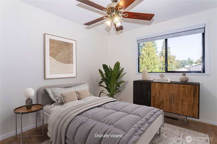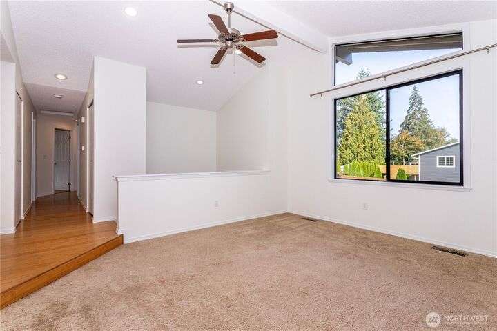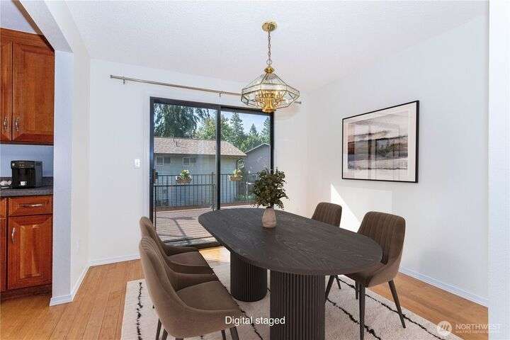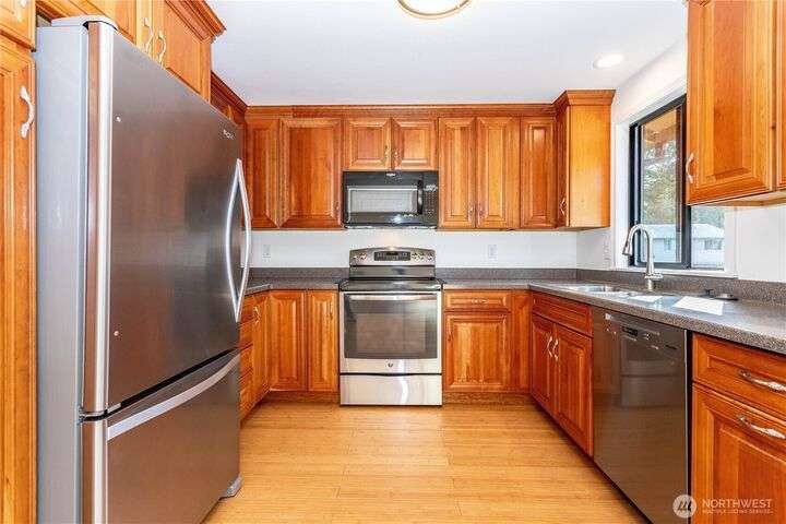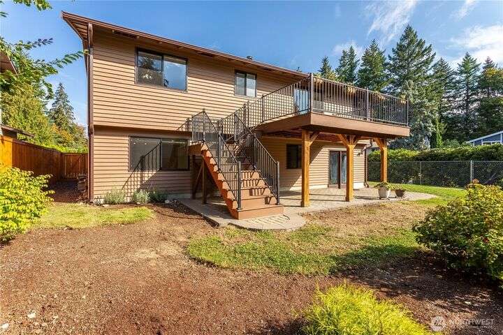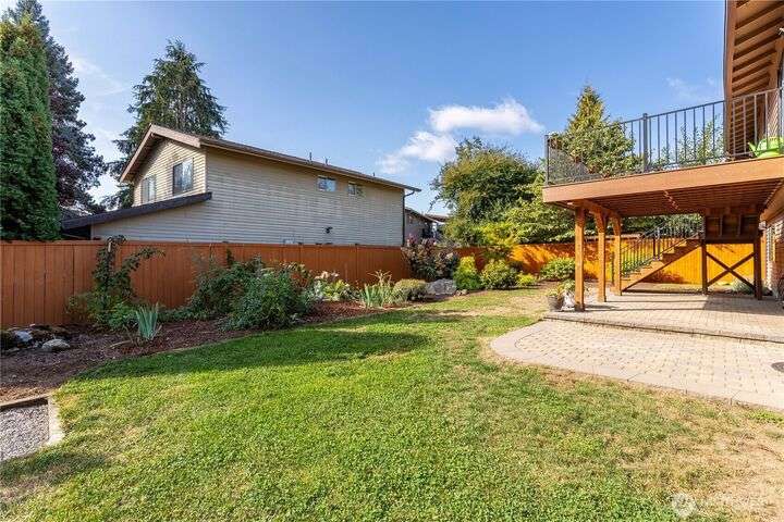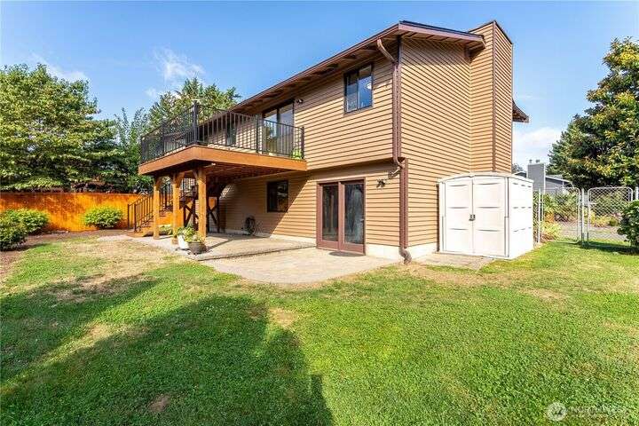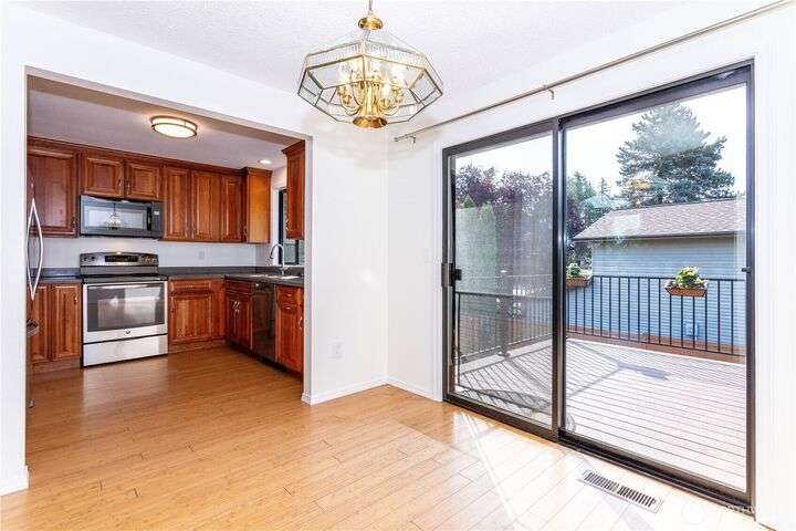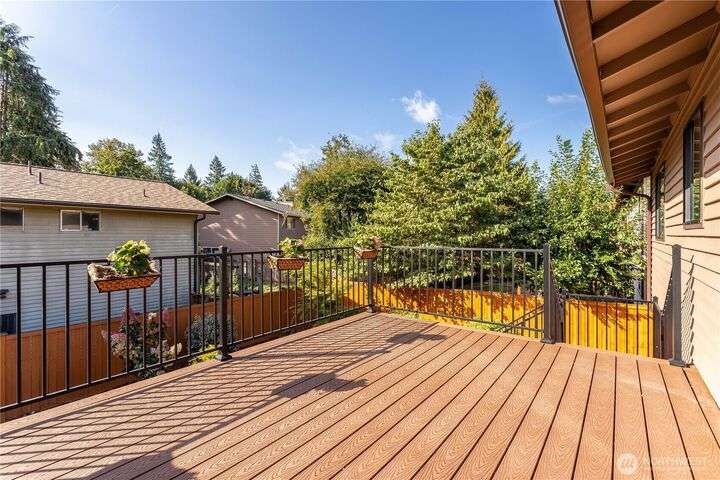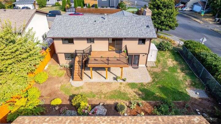 Tiffany Park split-entry home in quiet neighborhood, walking distance to Tiffany Park Elem School. Vaulted LR w/ floor-to-ceiling rockery highlights fireplace. Updated kitchen w/Cherry cabinetry, slider to spacious upper level deck w/stairs to mature garden/deck from DR. Upper primary suite w/ 2 add'l beds & full bath. Lower 4th bedroom + Korean Bathroom, ideal for those w/ mobility issues. Lg family room offers space for large scale furniture, media, home office, hobbies ; laundry room w/ laundry tub. Corner lot with flexibility for parking; 2 car garage.