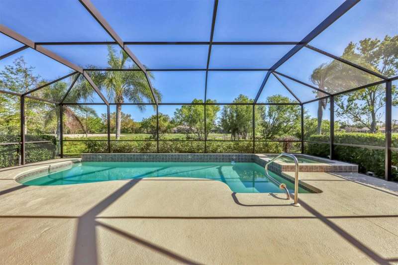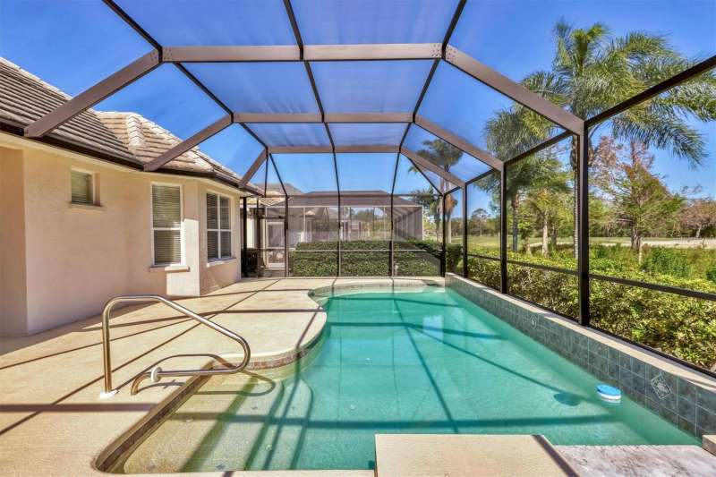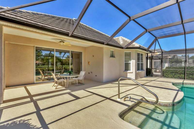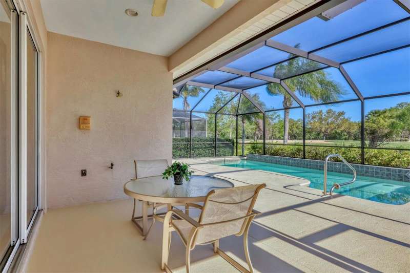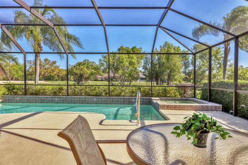 Significant Price Reduction! Experience Luxury Living in Lakewood Ranch Golf & Country Club. Welcome to this beautiful Neal Communities home, perfectly situated in the gated golf course community of Lakewood Ranch Golf & Country Club. Built in 2004, this 3-bedroom, 2-bath, 2-car garage home offers 1,980 square feet of living space and is designed for both elegance and comfort. With golf course & rough views, a private pool & spa, and an open, inviting layout, this home offers the perfect blend of indoor and outdoor Florida living. Step inside and be greeted by an abundance of natural light, high ceilings, and a spacious living area featuring a built-in entertainment center, decorative lighting, and sliding pocket doors that open to the screened lanai. The laminate flooring in the main living areas adds warmth and durability, while the open floor plan allows for effortless entertaining. The kitchen features natural gas cooking, white cabinetry with extra shelving, a built-in desk area, white appliances, and a glass block inset window for additional natural light. A reverse osmosis water filtration system is conveniently installed under the sink for clean, fresh drinking water. Adjacent to the kitchen, the dinette area is bright and welcoming, with three large windows and stylish decorative lighting. The primary suite is a peaceful retreat, boasting golf course views, high ceilings, two spacious closets, and an en-suite bath complete with a spa tub, dual sinks, vanity lighting, and a walk-in shower with glass inset doors. The second bedroom features plush carpeting, a built-in closet, and a large window, while the third bedroom/den offers flexibility with laminate flooring, a ceiling fan, and a built-in desk space that can be converted into a closet. The outdoor space is truly a highlight, with a screened-in lanai overlooking the Legacy Golf Course fairway. Enjoy relaxing in your private pool and spa, surrounded by lush landscaping that provides both beauty and privacy. The pool heater was disconnected from the natural gas, but the setup remains in place for future use if desired. Additional features of this home include a laundry room with built-in cabinetry, a utility sink, and a Maytag washer & dryer, as well as a two-car garage with keypad entry, a whole home water softener system, as well as a central vacuum system. Located within the renowned Lakewood Ranch Golf & Country Club, residents enjoy a maintenance-free lifestyle with HOA fees covering grounds maintenance and access to a neighborhood pool. For those seeking additional amenities, optional memberships provide access to four championship golf courses, a 20,000-square-foot fitness center, resort-style pools, 20 tennis courts, 20 pickleball courts, and three full-service restaurants and bars. This is your opportunity to experience the luxury, comfort, and convenience of life in Lakewood Ranch Golf & Country Club—one of the nation’s best-selling, multi-generational communities. Schedule your private showing today!