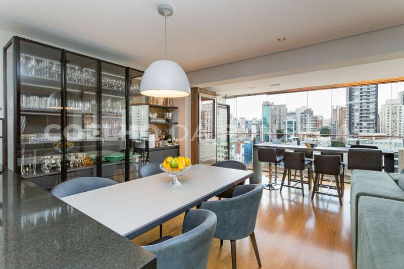 Apartamento duplex, localizado no coração da Vila Nova Conceição, um dos bairros mais nobres de São Paulo. Próximo ao Parque Ibirapuera e com toda a estrutura comercial da região. No piso inferior, ampla sala de estar e cozinha gourmet com acabamentos de alta qualidade. No piso superior, suíte master com closet e varanda privativa. Três vagas de garagem inclusas.