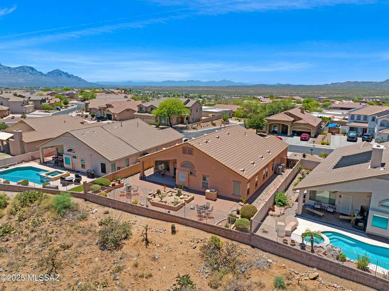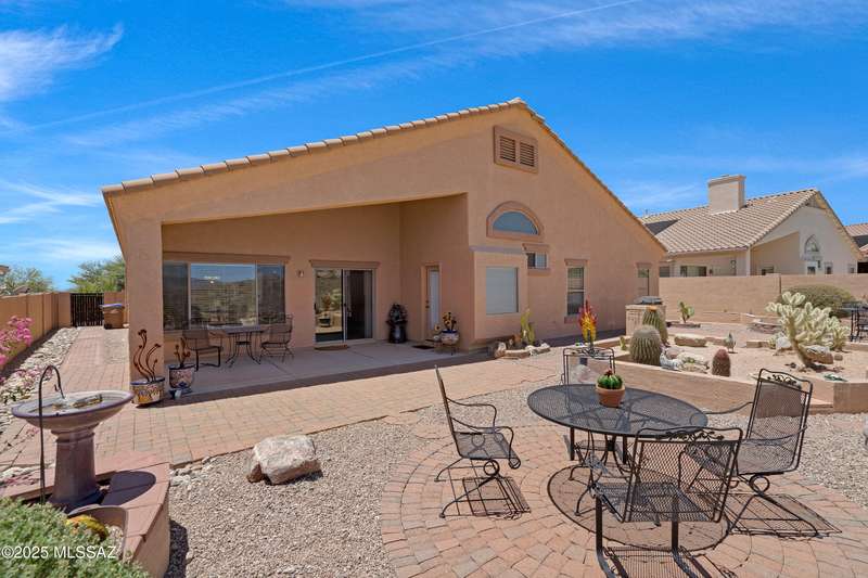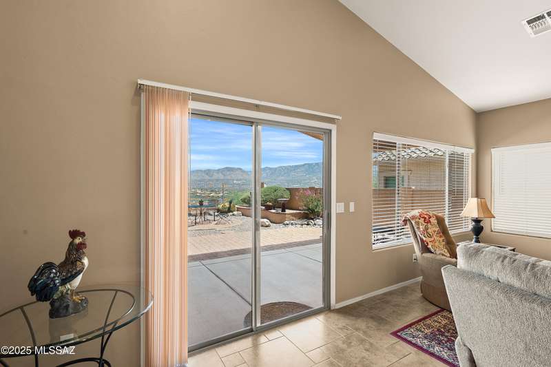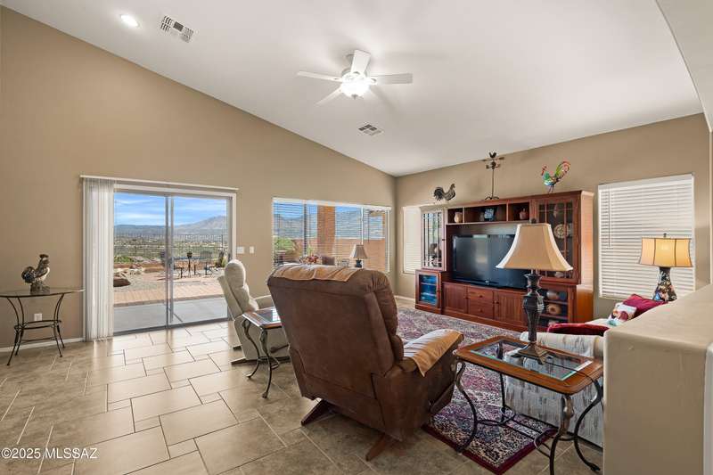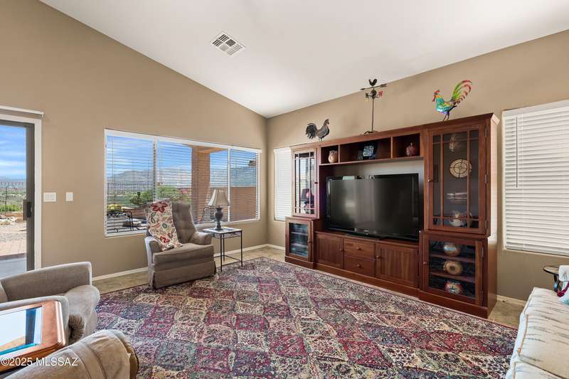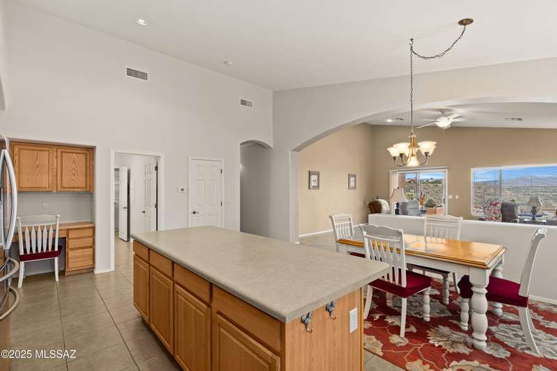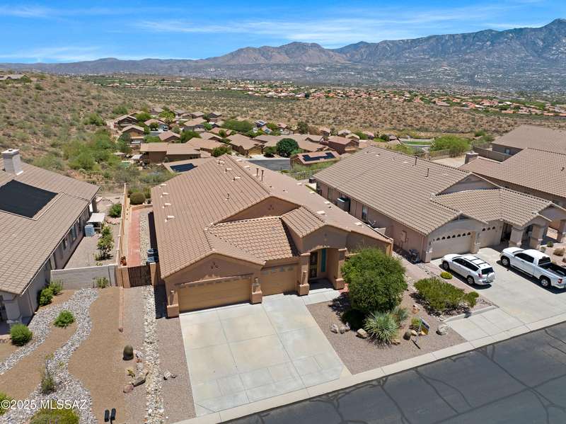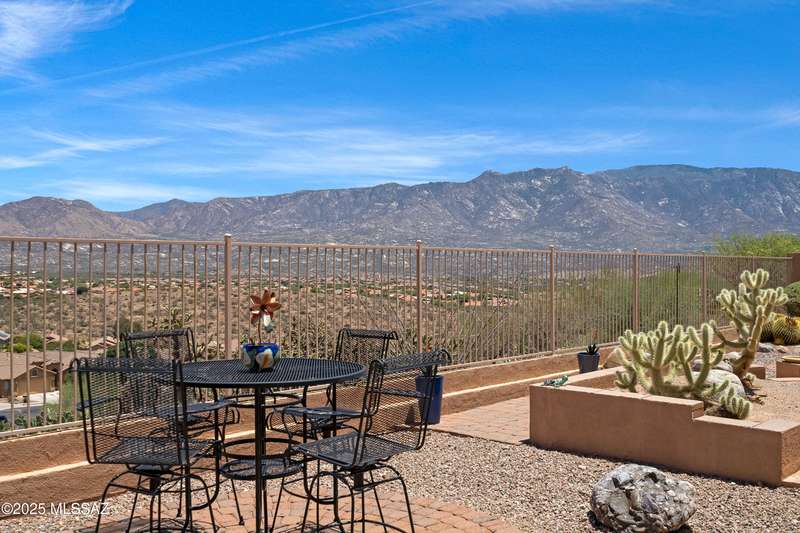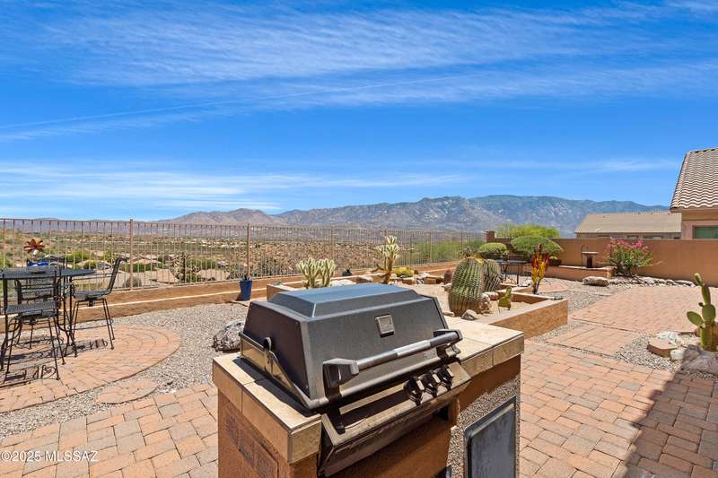 Views, Views, Views! Wonderful Eagle Crest Ranch home situated on a ridge offering panoramic Catalina Mountain views. The private yard backs to open space and offers year-round enjoyment. Whether sipping coffee in the morning or enjoying a glass of wine in the evening, this view can't be beat. Home features bright airy entrance, formal living/dining, separate family room off kitchen and nice sized breakfast nook. 3 bed + den,2 baths including spacious primary suite and ensuite bath with tub, shower, custom walk in closet, and direct access to the backyard. Ceramic tile throughout main areas, new carpet in bedrooms, fresh paint, and tons of storage. Home also features 3 car garage. Covered back patio, extended brick pavers including two additional sitting areas, built in BBQ plus