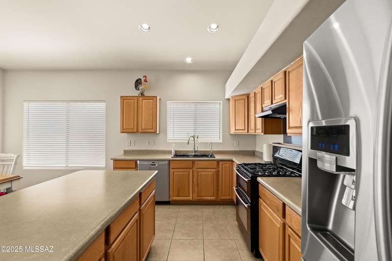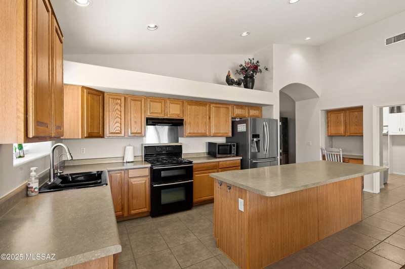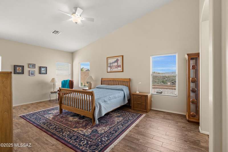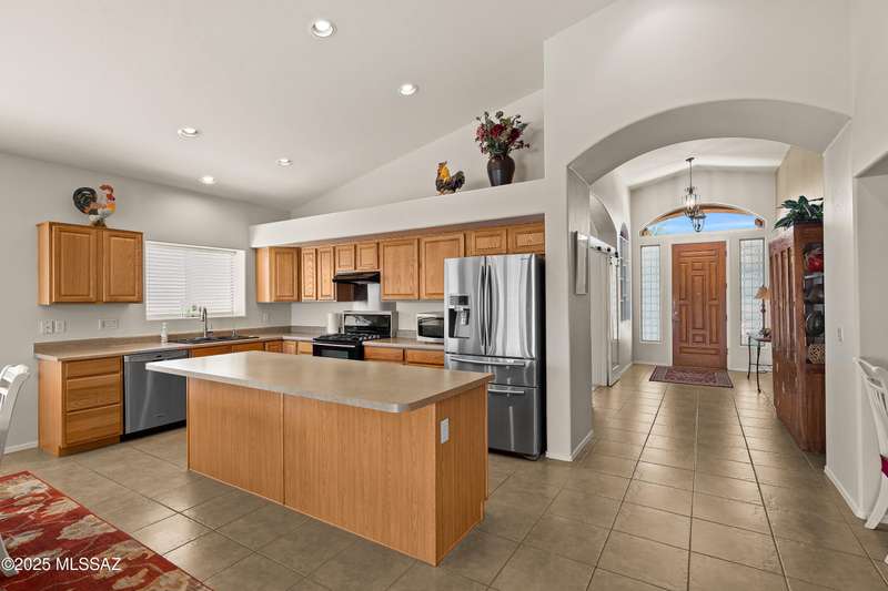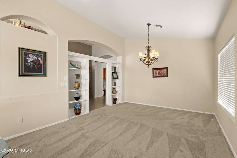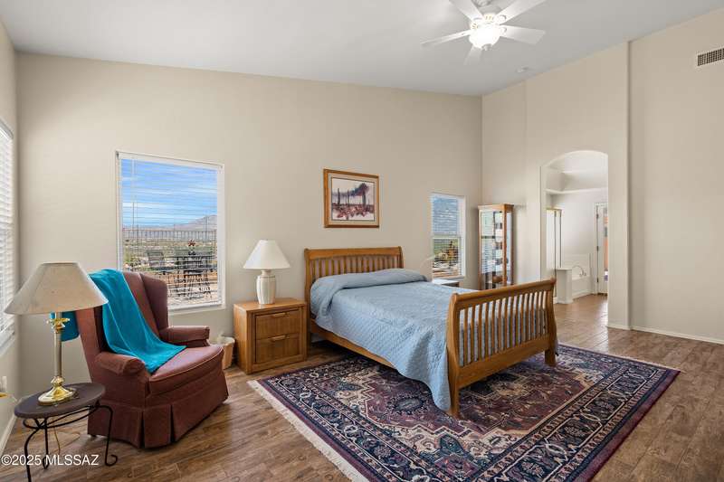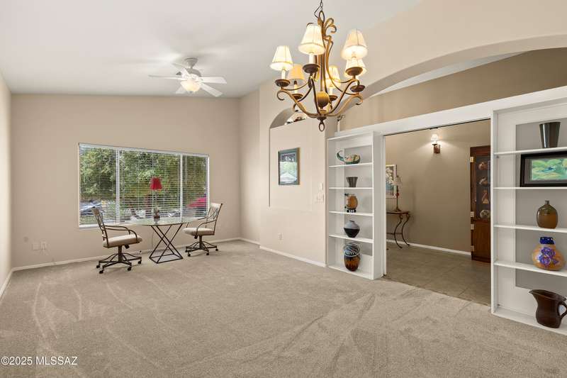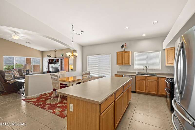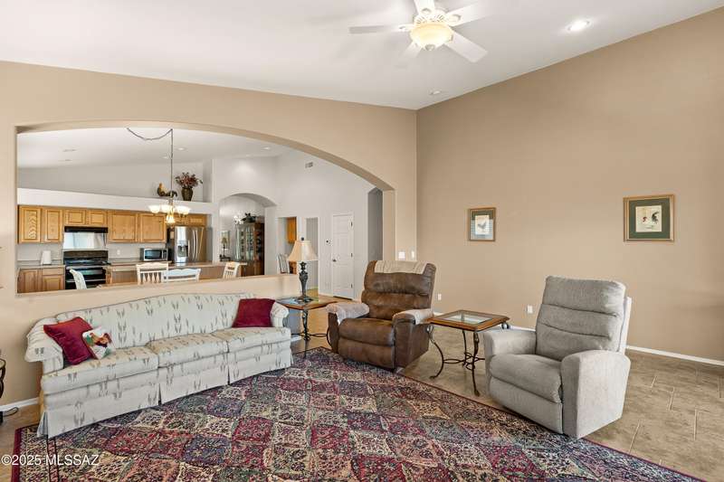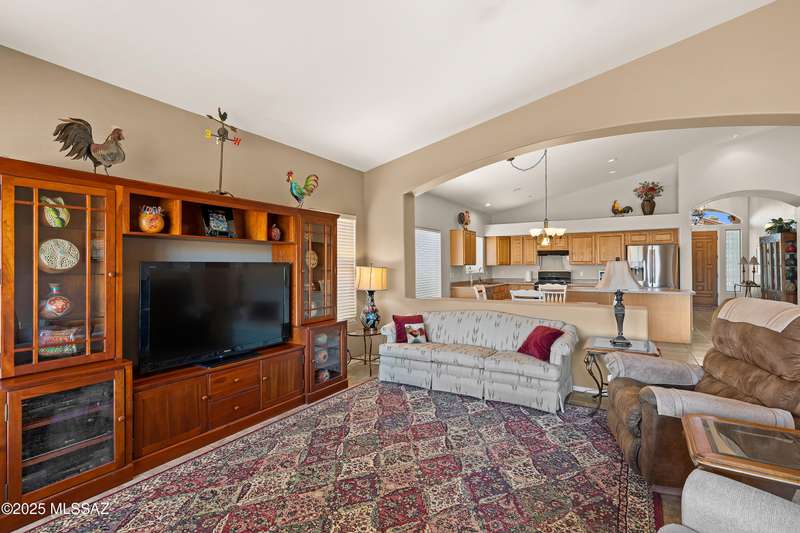 Views, Views, Views! Wonderful Eagle Crest Ranch home situated on a ridge offering panoramic Catalina Mountain views. The private yard backs to open space and offers year-round enjoyment. Whether sipping coffee in the morning or enjoying a glass of wine in the evening, this view can't be beat. Home features bright airy entrance, formal living/dining, separate family room off kitchen and nice sized breakfast nook. 3 bed + den,2 baths including spacious primary suite and ensuite bath with tub, shower, custom walk in closet, and direct access to the backyard. Ceramic tile throughout main areas, new carpet in bedrooms, fresh paint, and tons of storage. Home also features 3 car garage. Covered back patio, extended brick pavers including two additional sitting areas, built in BBQ plus