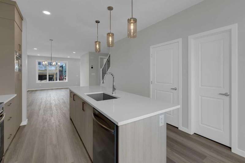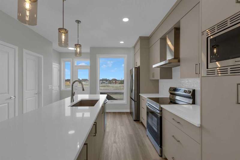 Move into your BRAND NEW home for Christmas! This gorgeous half duplex—the Wren by Excel Homes—is loaded w/upgrades, high end finishings & ready for quick possession. Perfectly situated in Airdries COBBLESTONE CREEK, residents can find sanctuary in Cobblestone's network of parks, paths & recreational amenities - with direct access & pathway connections to amazing Chinook Winds Regional Park & across the street from Airdries new rec Centre - tennis, pickleball & basketball courts - so many options to say active & socialize! Nearby schools have your covered from K to 9. The WREN showcases a contemporary open-concept main floor, ideal for entertaining and everyday living. Poured concrete walk ways & front porch will provide for lasting curb appeal. The chef-inspired kitchen, located at the rear of the home, overlooks the backyard and provides gorgeous, neutral, ceiling height cabinetry, drawers, and a full pantry. Upstairs, a striking black metal railing leads to a cozy central bonus room with vaulted ceilings, separating two generous secondary bedrooms from the private primary suite, which features a full ensuite and a spacious walk-in closet. All bathrooms have stone countertops! The upper floor also includes a convenient laundry & and family bath. This home includes a SIDE ENTRANCE to the basement, offers 9' ceilings, is drywalled and the electrical is also done. The utilities are nicely tucked at the rear of the home for easy development & more useable floor space. This home comes with an 18.8 x 22 CONCRETE parking pad, one tree & sod to front yard. There is also a gas line to the bbq at the rear. With over 35 years of experience, more than 15,000 homes built, and 75 awards for design and industry excellence, Excel Homes continues to deliver quality, innovation, and peace of mind—making the Wren a truly smart choice for your next move.