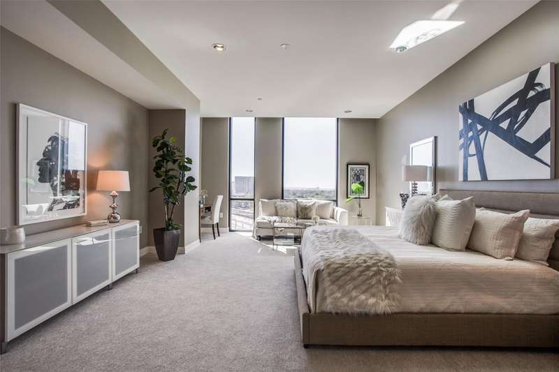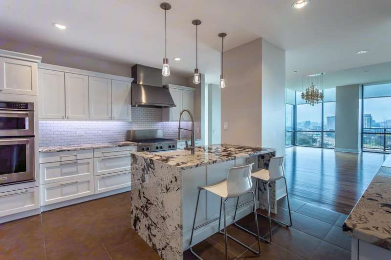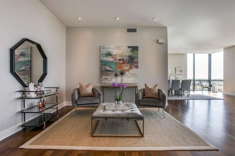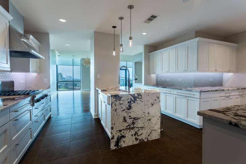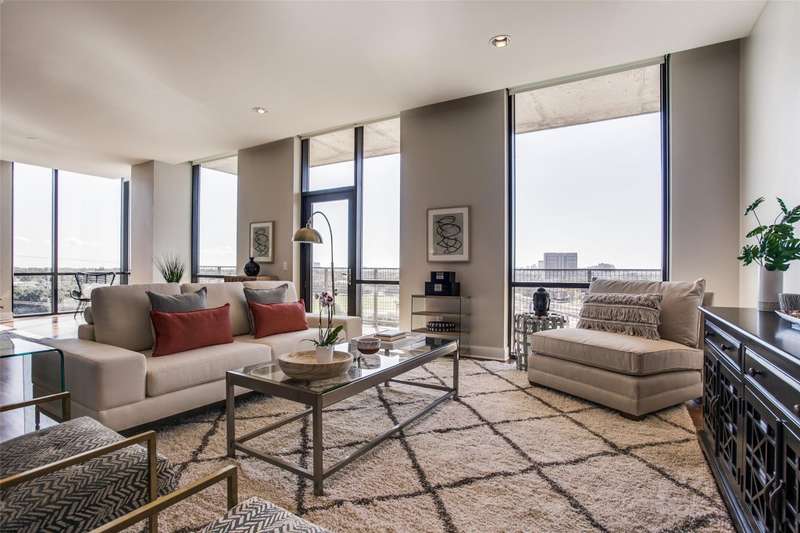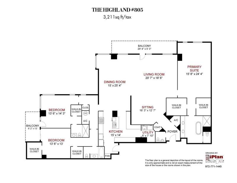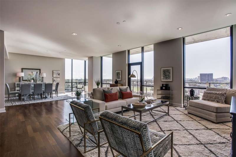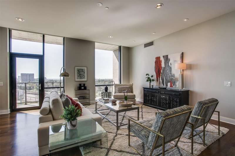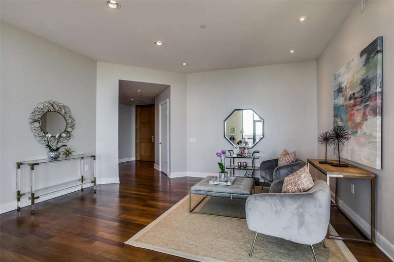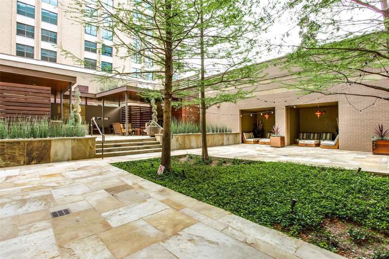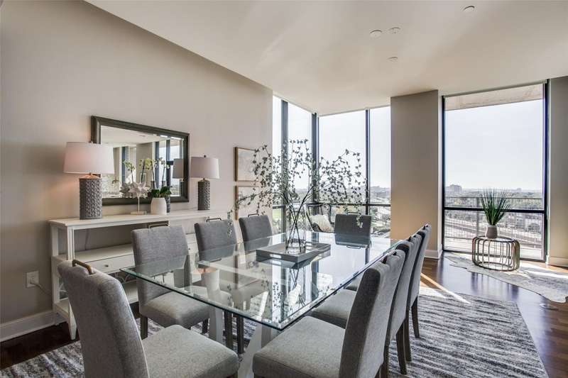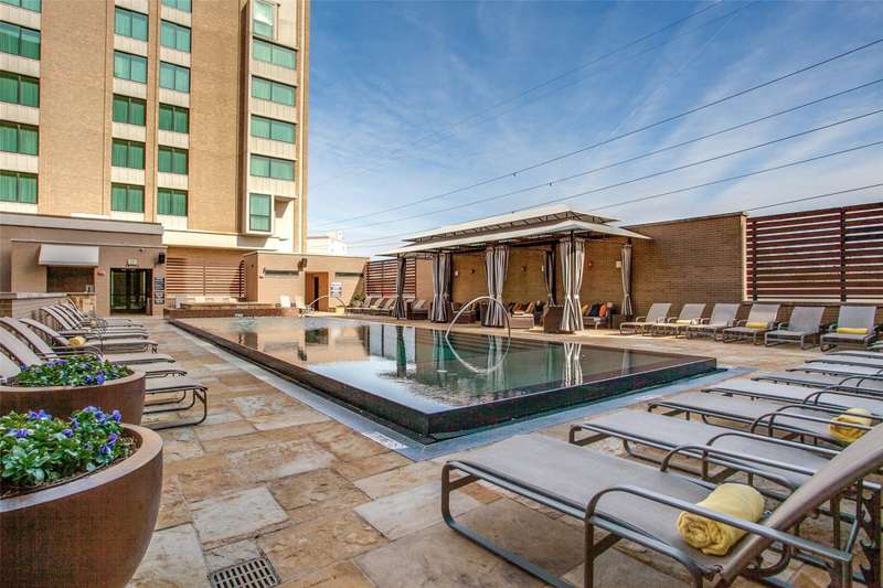 Rare opportunity to own a beautiful Sub-penthouse 8th floor RENOVATED residence at the highly sought-after Residences at the Highland, next to The Highland Hotel, conveniently located across from SMU, the Park Cities & Mockingbird Station. Enjoy stunning views of Downtown Dallas from one of two terraces, living areas & bedrooms. An open floor plan with updated gourmet kitchen, 3 bedrooms, 3.5 baths & over 3200 sq ft of living space provides plenty of room for entertaining & relaxation. Fabulous walkability with direct access to the Katy Trail & hike-bike system makes it easy to take advantage of all that the area has to offer, including Mockingbird Station with its restaurants, theater & shopping, SMU, University Park & The Bush Library. Highland Residences boast high-end amenities like resort-style heated pool with cabanas, large covered courtyard with a fireplace, two club rooms, conference room, a well-equipped fitness center, a grill patio with dining areas, concierge, valet & 24-hour security. In addition, the adjacent Hilton Highland Hotel offers room (food) service, full-service Spa & acclaimed Knife Steakhouse & Bar. The unit includes a convenient same-floor storage room & 2 assigned parking spaces. The freshly painted unit has the popular open living-dining-kitchen concept. Two living areas are perfect for a separate TV area-Den. The oversized updated kitchen sports stainless appliances, granite counters, a breakfast bar with pendant lighting & abundant storage-pantry space, as well as a full size laundry room. The dining room can easily accomodate a large family gathering. The primary suite is quite generous with room for a sitting area, has 2 walk-in closets, an ensuite marble & limestone bath with double sinks, separate shower & freestanding tub. The guest suites are split on the opposite side of the unit from the primary suite. They each have ensuite baths, walk-in closets & a share a balcony. This largest standard floor plan lives much like a home.