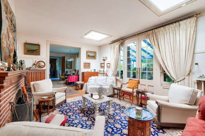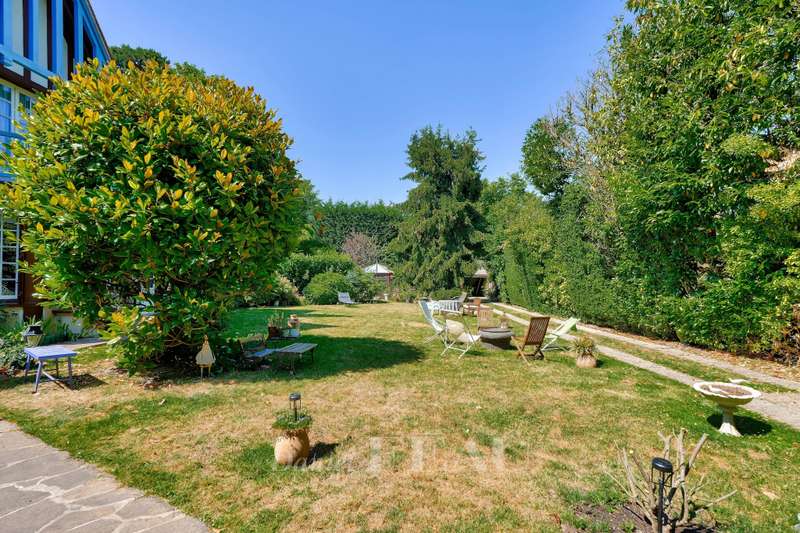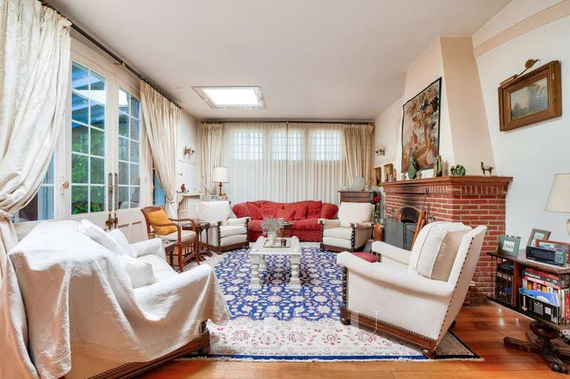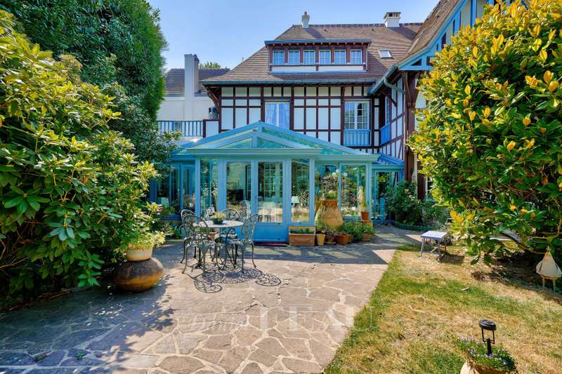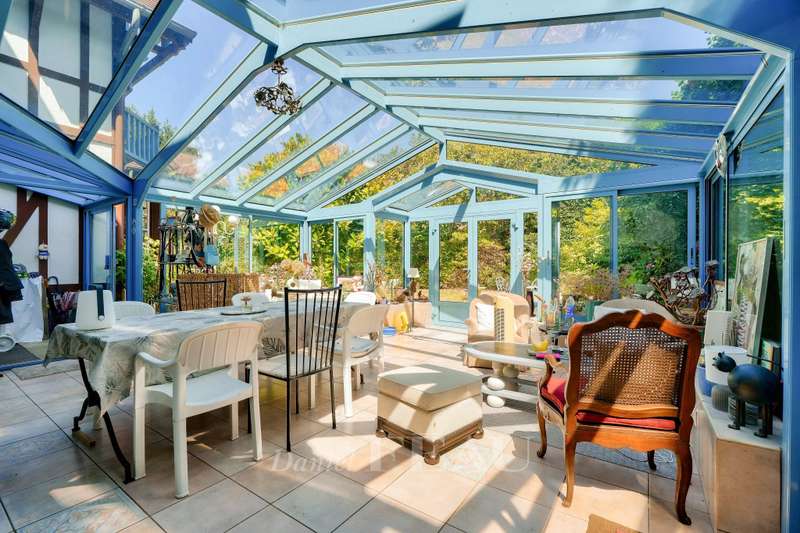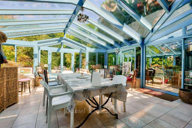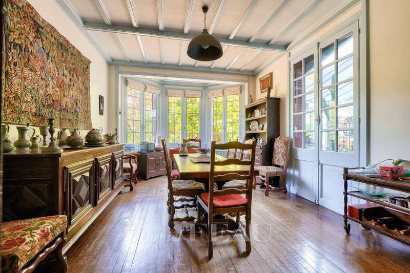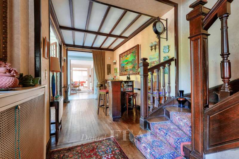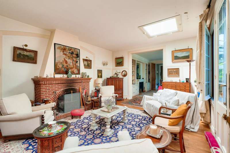 This late 19th century property is in a leafy environment a stone’s throw from Saint-Cloud Park and the forest, and a 3-minute walk from the bus lanes accessing the station. It includes a living/reception room, a dining room, a conservatory, a kitchen with a pantry, and a study. Upstairs are a master suite with a bathroom and a dressing room accessing a near 28 sqm terrace, and two bedrooms sharing a bathroom. The top floor comprises two further bedrooms, a shower room, a study with fitted storage space, and a fitness room. On a partial basement with a boiler room, a storage room and a wine cellar. A double garage and a chicken coop are at the bottom of the garden.