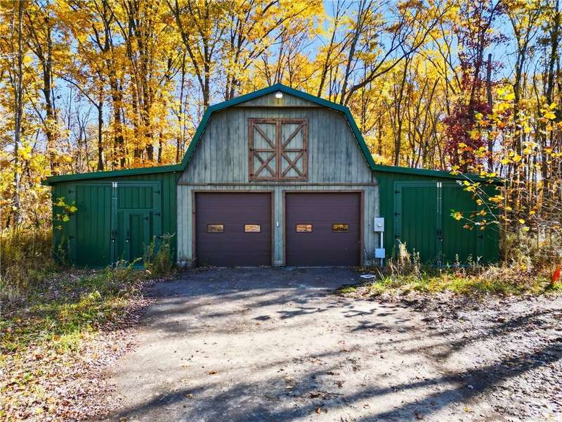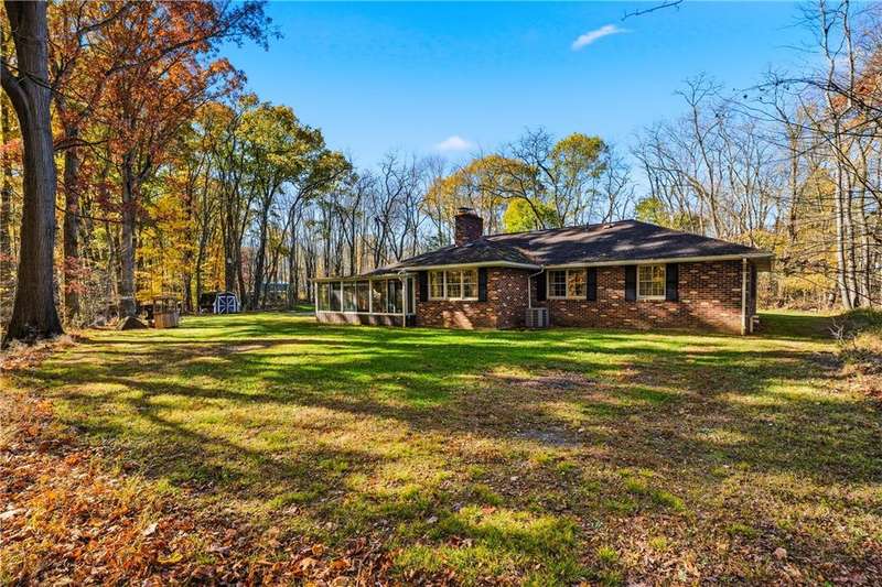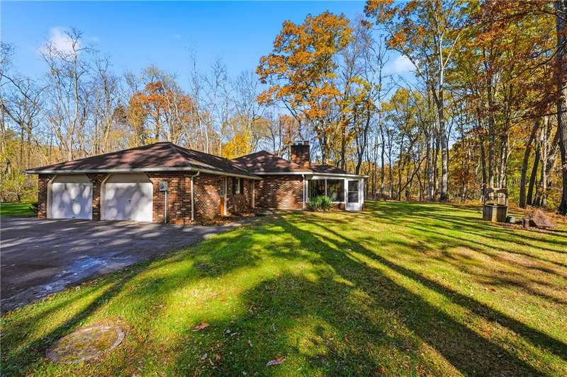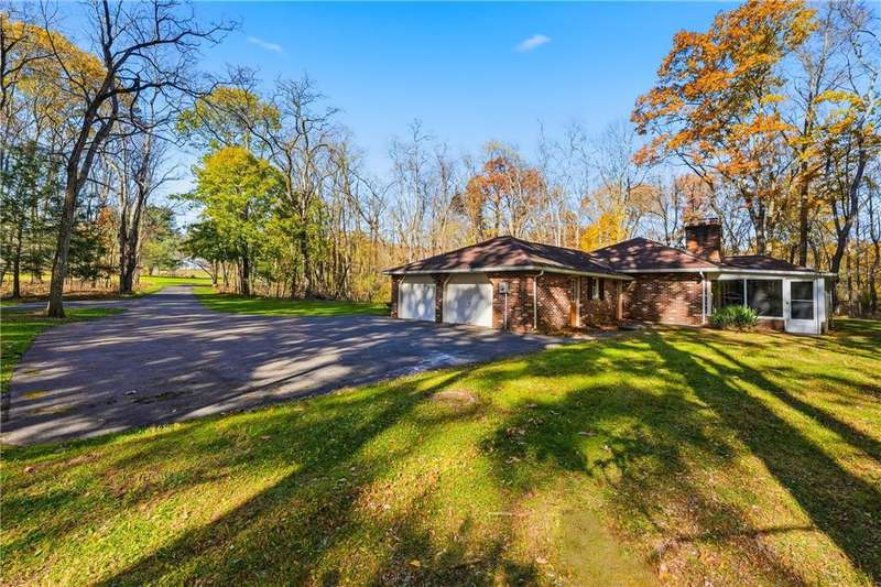 Nestled in a peaceful rural setting, this inviting 3-bedroom, 2-bath ranch offers the perfect blend of privacy, & natural beauty. Set on 5 picturesque acres, the property features a scenic creek that winds around 2/3 of the land, creating a serene backdrop for everyday living. Upon entry there are beautiful hardwood plank flooring leading into a spacious living room with a fireplace and patio doors out to the sunroom. Ideal for gatherings or quiet evenings at home, the step-down family room has a fireplace & patio doors that also open to the enclosed sunroom. The primary suite includes a full bath with walk-in shower. The kitchen is spacious & has ample counter space, breakfast bar, appliances, and a see through to the family room. There is main floor laundry off the kitchen, well and septic, hot water heat & central air. Outside, you'll find a 2-car attached garage, shed , and a barn with plenty of storage space and possibilities!If you're looking for private this is it!