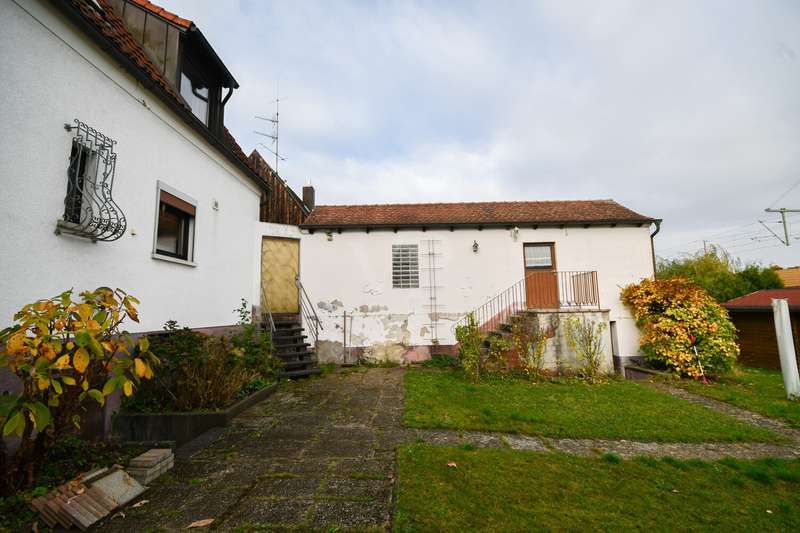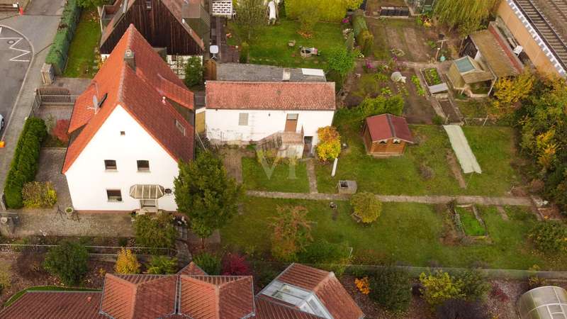 Click here for the 360° tour: https://von-poll.com/tour/fuerth/lqKA This detached family home from 1937 with approx. 95 m² of living space stands on a generous plot of around 663 m² and combines classic charm with versatile potential. On the first floor you will find a bright and friendly kitchen, which is fully functional and has a cozy dining area. From here you can enjoy the view of the garden. There is also a living room and a separate guest WC on the first floor. The terrace in front of the house invites you to linger. There is a bedroom and a children's room on the upper floor. The bedroom is accessible via the bathroom. The top floor is currently only accessible via the pull-out staircase, but offers complete expansion potential and thus additional living space. In the basement there is a small workshop, the boiler room with an oil tank holding approx. 4,400 liters and another room with an adjoining bathroom. The basement hallway leads directly to the garden behind the house, which offers a variety of uses for leisure, hobbies or cultivation ideas. A party room, a shed under the garage and a garden shed complete the offer. A single garage is available for vehicles, and there are also parking spaces directly in front of the house. The railroad line runs directly behind the property, which should be taken into account when planning. The roof as well as the heating and electrical installations were technically renewed around 1990. The wooden windows date from the 1980s and do not have shutters. Overall, the property is in need of renovation, meaning that the floor coverings, wall design and other technical details can be modernized according to your own ideas. With craftsmanship and creativity, a home can be created here that combines charm, individuality and plenty of design freedom - a place where dream homes can become reality.