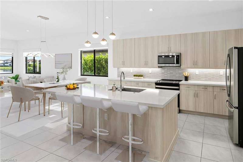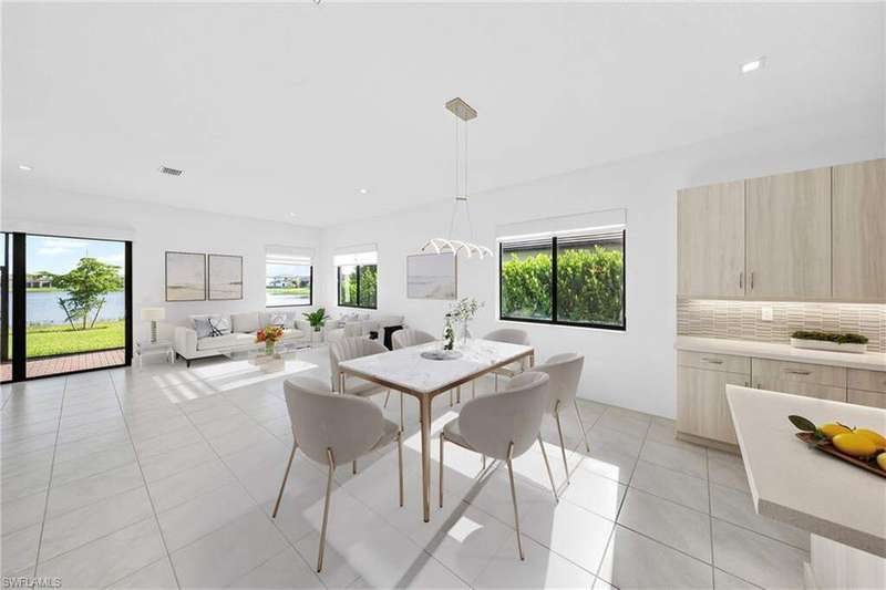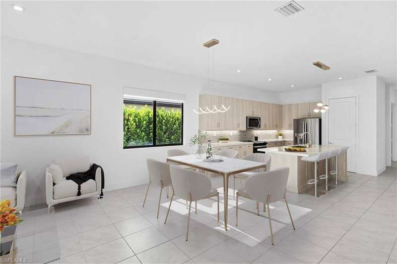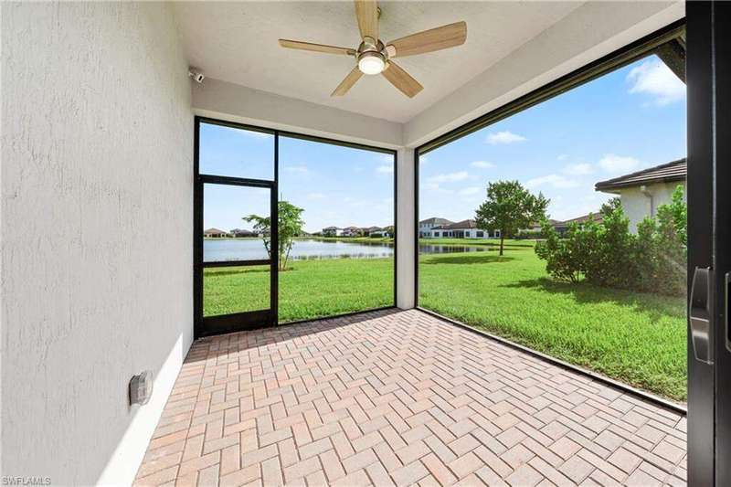 Step into a home with a 5.2% ASSUMABLE MORTGAGE RATE and save BIG!!! Welcome to where chic sophistication meets Florida charm in Maple Ridge of Ave Maria! This stunning 3 bedroom plus den and 2 and a half bath single-family nearly 2,300 Sq. Ft. of living space home, boasts gorgeous tile flooring throughout and is light and bright with tons of natural light. Greetings from the foyer will lead you to the den with elegant French doors to the left and straight to the kitchen and living area. The chef's kitchen will leave the most discerning chefs pleased with its center island, quartz counters, stainless steel appliances, disposal, and plentiful cabinet and counter space. Flanked by the kitchen, the dining room and living area is oversized with access to the enclosed lanai with beautifully idyllic lake views. The primary bedroom is a true retreat with your double vanity, water closet, gorgeous walk-in shower, and large walk-in California closet. Outside, build the pool of your vision! The 2 remaining guest bedrooms enjoy a shared full bathroom with water closet and double vanity as well. Peace of mind is enhanced with an additional powder room, laundry in residence with laundry tub, 2 car garage, and close proximity to not only the clubhouse but Downtown Ave Maria with shopping and dining at your disposal!
