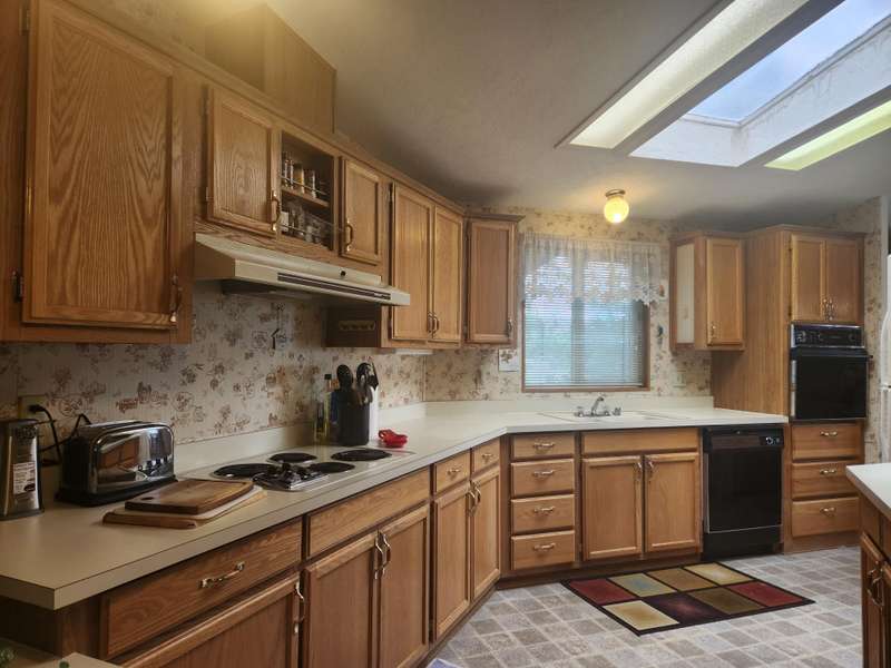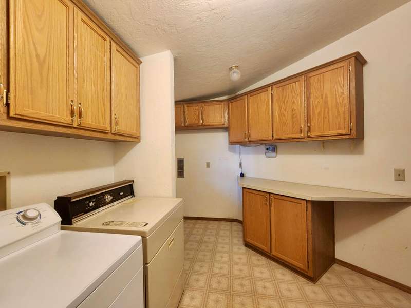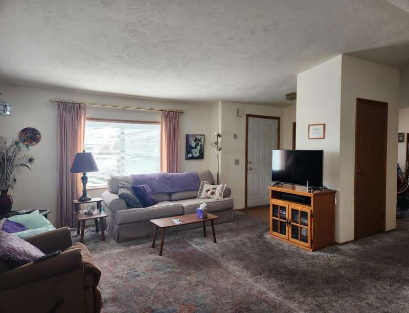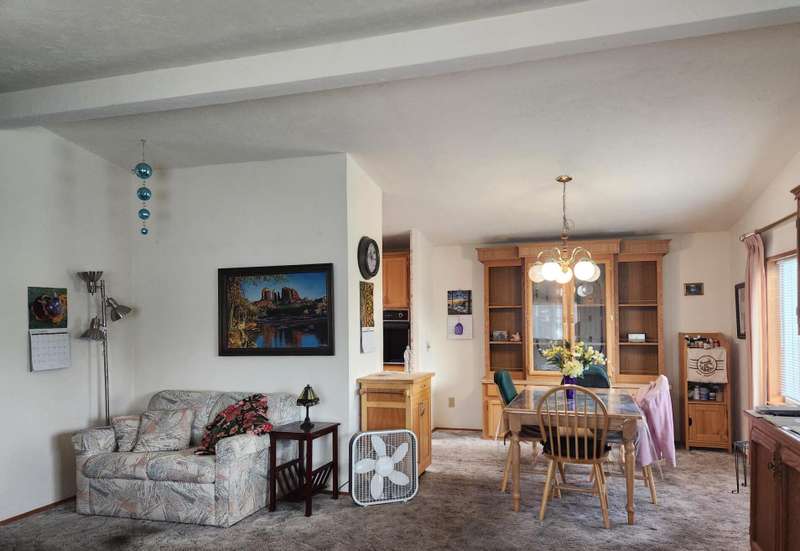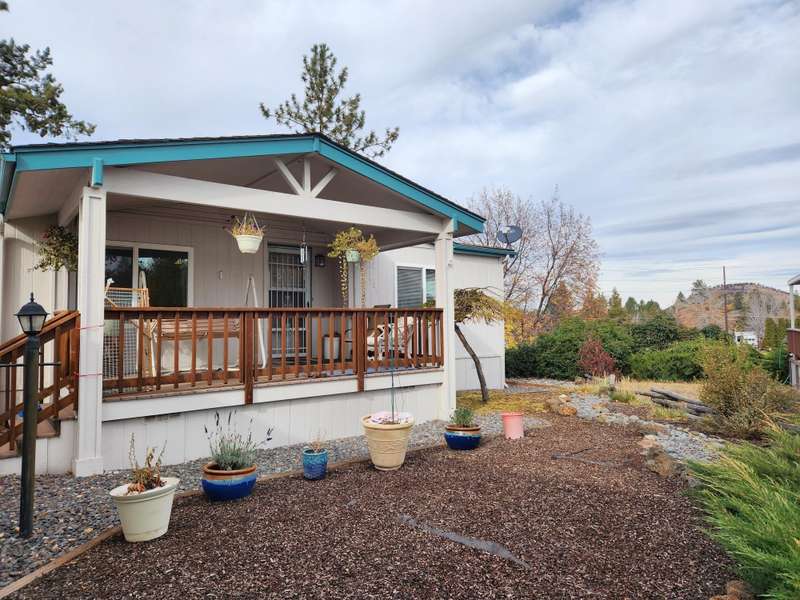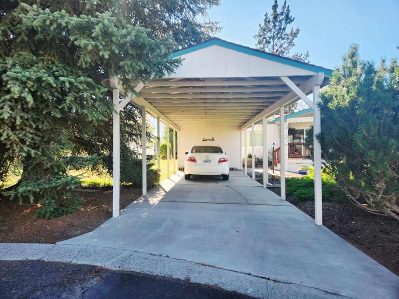 Welcome home to Suntree Village, one of Bend's finest 55+ parks. Tucked away on a cul-de-sac this 1512 sq ft home has 2 bedrooms and 2 baths. a living room with vaulted ceilings and built ins, a den/office, a kitchen that is large with lots of cabinets and counterspace and skylight, large primary suite with walk in closet, stall shower and soaking tub, large utility room with lots and cabinet, folding counter and washer and dryer are included, private low maintenance yard with covered front porch and backyard with covered patio and garden area, Carport holds 2 cars and has storage unit. Even a view of Pilot Butte. All in walking distance to The Larkspur Community Center where you can swim and exercise. Make appointment to view today.