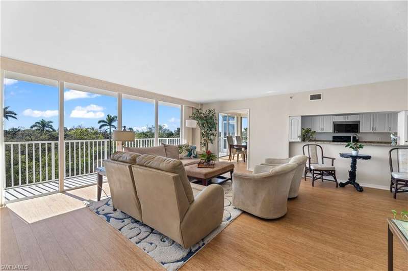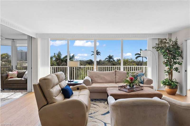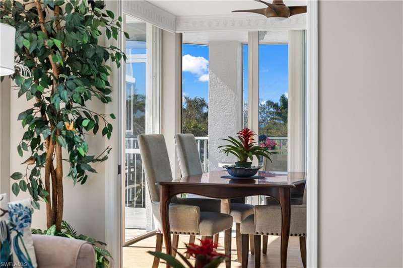 Located in the highly sought after 01 stack, this rare corner unit offers unobstructed panoramic views of the lush Pelican Bay Preserve, creating a light & bright serene Floridian oasis that you will be proud to call home. Featuring a spacious 3-bedroom floor plan, this move-in-ready and fully furnished residence includes two Florida-style sunrooms and an expansive walk-out balcony, perfect for soaking in the breathtaking Naples sunsets each evening. The two primary bedrooms provide the luxury of direct access to the enclosed sunrooms, another with a third bedroom to comfortable host your overnight guests or to be turned into a spacious den. This thoughtful layout enhances the flow of the home, allowing for an abundance of natural light and an inviting atmosphere perfect for relaxation and entertainment. The open living area is flooded with natural light thanks to its Southwestern exposure, making it an inviting space for both relaxation and entertainment. The spacious gally style kitc