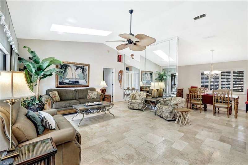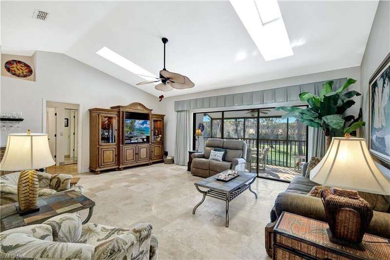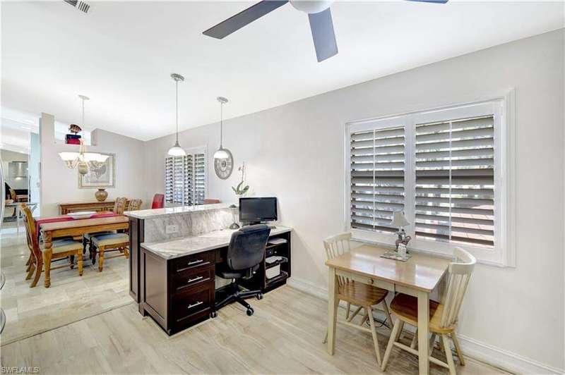 Nestled in the heart of Naples, this enchanting condo offers a harmonious blend of luxury and leisure, perfect for those seeking an active lifestyle with all the comforts of modern living. The updated kitchen, complete with stainless steel appliances including an induction cooktop and warming drawer, is a culinary enthusiast's dream. The renovated bathrooms and flooring add a touch of elegance throughout this inviting abode. Spend time on your screened lanai and watch the golfers play multiple holes. A detached garage provides convenience, while the community's bundled amenities, including golf, nine sparkling pools, tennis, pickleball, bocce, and cornhole, ensure endless entertainment. The vibrant clubhouse and on-site restaurant promise delightful gatherings and new friendships. Situated just a stone's throw from downtown Naples, you'll revel in the proximity to the lively 5th Avenue shopping district and the breathtaking Gulf Coast beaches. This property is more than a home; it's a gateway to a vibrant, fulfilling lifestyle in a location that truly has it all. Make this your permanent Florida vacation!!