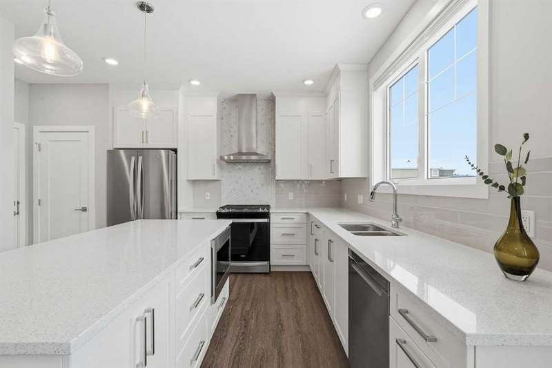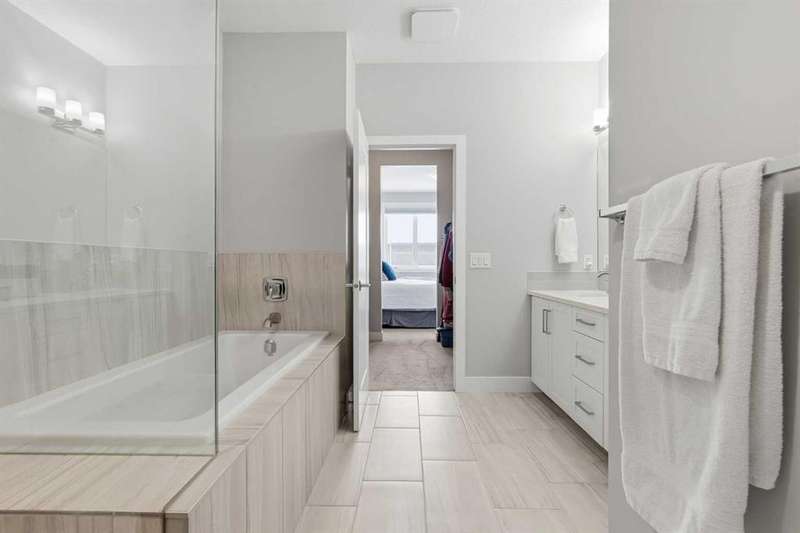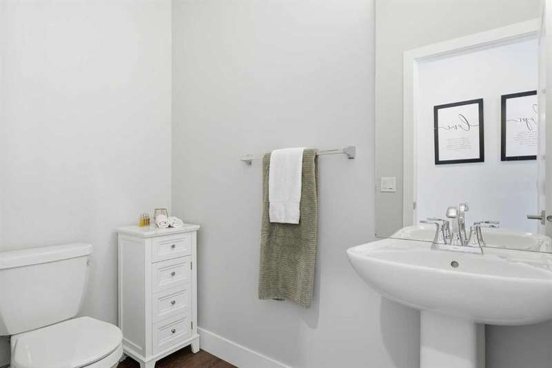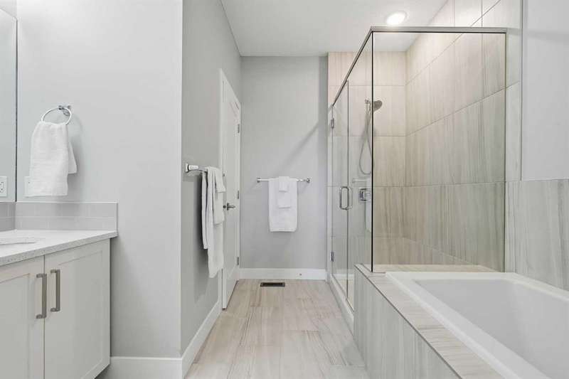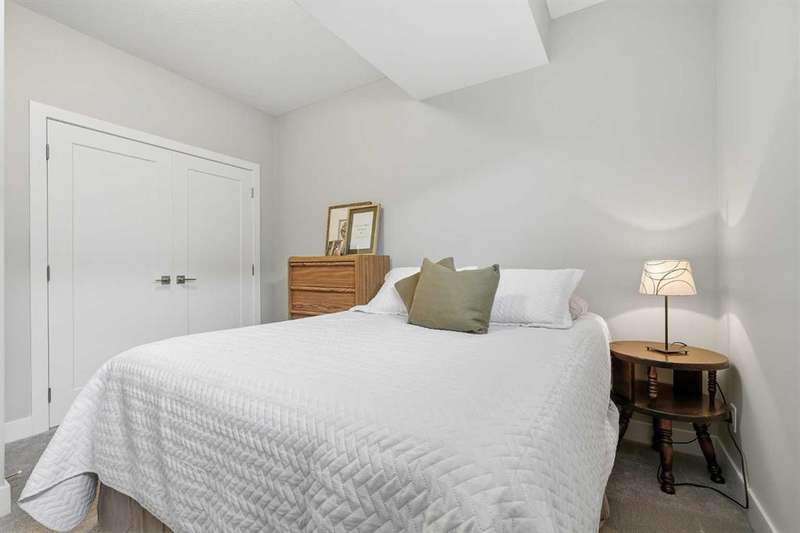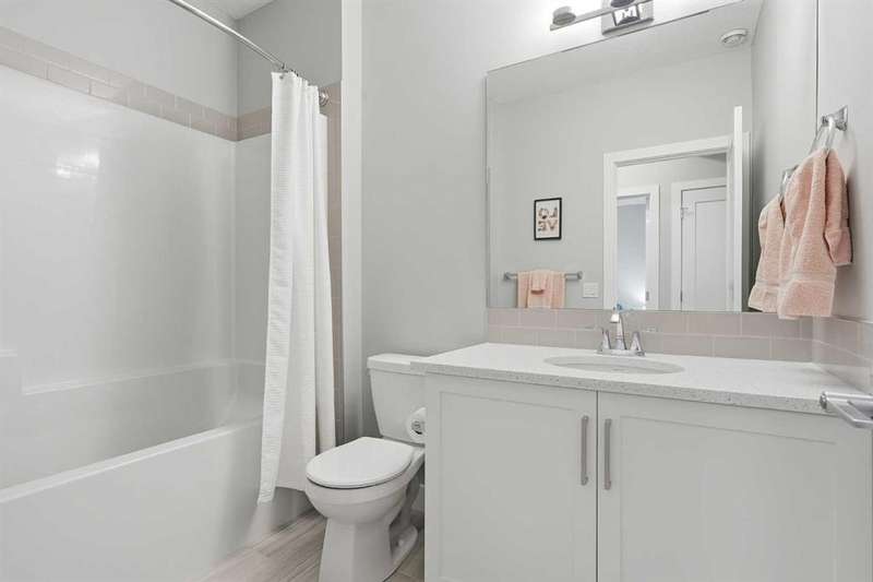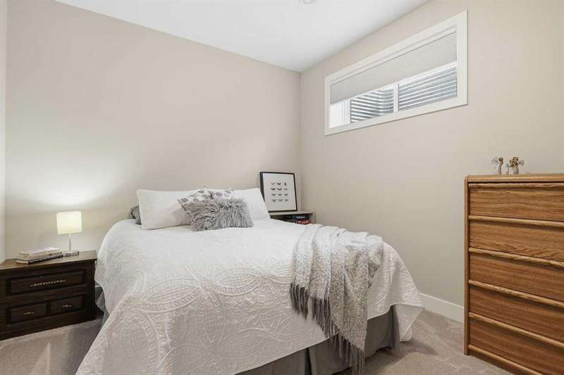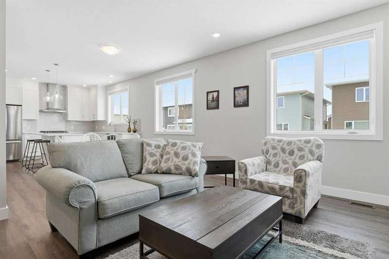 Experience the ease of lock-and-leave villa living in this nearly brand-new home, completed in 2024 and still carrying that fresh, new-home feel (and smell!) Elegantly and functionally designed, this low-maintenance villa offers tons of developed living space and is surrounded by everyday conveniences, including a nearby nature reserve, Spruce Meadows, shopping, and excellent access to major transportation routes. Inside, the home is loaded with upgrades. Through the front door you’re greeted with luxurious vinyl plank flooring underfoot, high ceilings above, and a neutral color palette throughout - each space absolutely drenched in natural sunlight. A quaint den to your right offers flexible use, while a handy half bath is thoughtfully tucked away from the main living and dining areas. You’re then welcomed into the bright living room, featuring a gorgeous upgraded gas fireplace and access to your rear deck, complete with a gas hookup for your BBQ. The kitchen & dining area truly anchor the home with their “wow” factor: extended height cabinets, a stunning hood fan, gas range, fridge with water, and a built-in microwave all form part of the upgraded appliance package. Quartz countertops make prep and cleanup effortless, while under-cabinet lighting adds warmth and ambiance at the end of the day. All cabinetry is finished with soft-close hinges and practical organizers throughout. The dedicated coffee/butler server station with a beverage cooler keeps your main counter space free and functional, and offers even more prep & storage space. The main level is designed with true convenience in mind, including side-by-side laundry. The generous primary bedroom features a large walk-in closet that leads into your spa-like 5-piece ensuite complete with dual sinks, a stunning tub, stand-alone shower, separate toilet room, and luxurious in-floor heating. Downstairs, high ceilings create a bright, open feel that’s far from a typical basement. A huge living area offers flexibility for a gym, media space, games room - whatever suits your lifestyle. Two additional bedrooms, a 4-piece bathroom, and ample storage complete the lower level. The utility room includes a high-efficiency furnace, sump pump, rough-in for radon mitigation, air exchange system, and a large hot water tank. This villa is finished with central A/C, a double attached garage, and a generously sized driveway (shoveled by the condo corp!) Beautifully appointed and designed for effortless living, this home is the perfect blend of comfort, luxury, and low-maintenance convenience - an ideal option for anyone seeking easy living. This is truly a smart move.