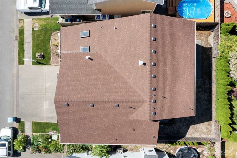 Price Improvement!! Great plan w/lots of upgrades, air-conditioned, newer high-eff. furnace, brand new roof, 3 sided granite FP, 9 1/2' ceilings on main, coffered ceiling in dining room, plumbed & wired for vacuum, recessed lighting, 2 snack bars & large pantry, Spacious foyer w/2 skylights, extra wide stairway/spindle railing & white 6 panel doors. Over 600 sq ft Owner's suite w/vaulted ceilings & dbl doors, 5pc En Suite w/8' sink vanity. Tinted one-way windows. Utility up for convenience. 3-Car Garage, Huge patio & covered front porch.