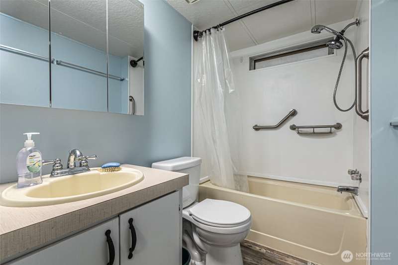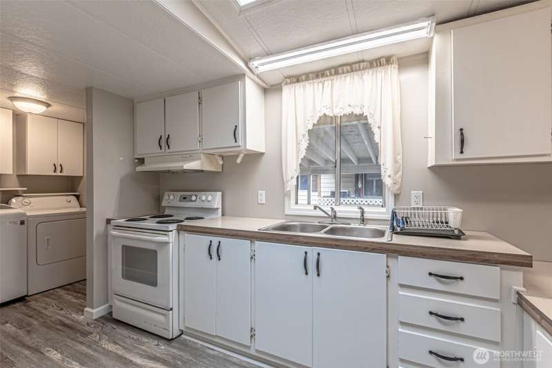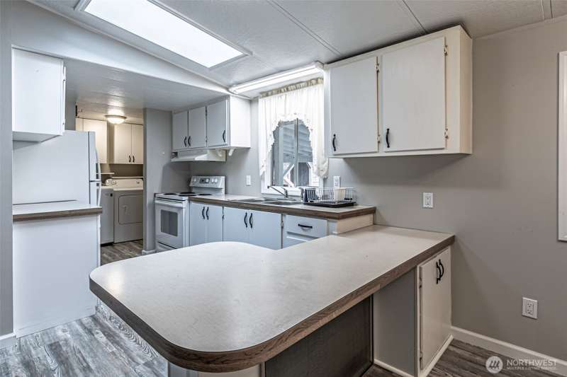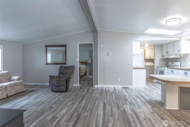 Nestled in the desirable 55+ community of Crystalaire, this inviting 3-bedroom home offers peace & privacy, backing up to a serene forested area. Enjoy the added comfort of a new roof (2019), fresh interior & exterior paint (2020), and brand-new water heater (2020). The home features beautiful new laminate flooring throughout & low-maintenance landscaping for effortless upkeep. A wheelchair ramp provides easy access to the front door and spacious storage shed adds extra convenience. The layout includes 2 bedrooms, full bathroom, and spacious primary suite with walk-in closet & private bath. Located in a prime spot in Enumclaw, you're minutes away from shopping, dining, and all the amenities you need. Make this charming home yours today! :)