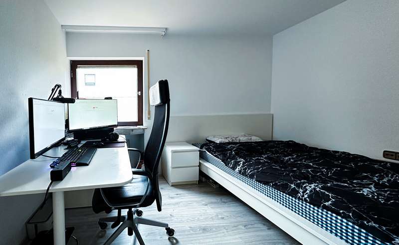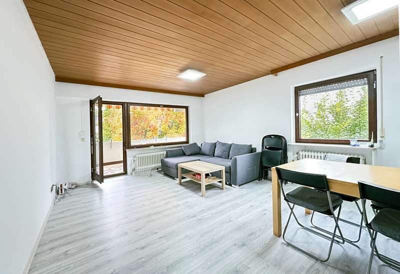 Welcome to this well-kept 3-room apartment with approx. 72 m² of living space in a small residential unit with only six parties. The building was constructed in 1973 and equipped with modern biogas central heating in 2019 - both ecological and cost-efficient. The apartment on the second floor boasts a well thought-out floor plan. The central hallway provides access to all rooms. The centerpiece is the bright living room with a southwest-facing, covered balcony - ideal for relaxing hours outdoors. The quiet bedroom offers space for a large bed and a spacious wardrobe. Another room can be used flexibly as a children's room, guest room or study. The spacious daylight bathroom is equipped with a bathtub and washbasin; the large window provides light and fresh air. The separate WC with additional washbasin is located next door. A lockable cellar room offers additional storage space. A single garage directly next to the house and a large outdoor parking space are included in the purchase price. Particularly noteworthy is the communal wellness area with sauna and pool - a rare added value. Active property management, including a janitor service, ensures that the property retains its value. The maintenance reserve for the entire property is €253,000, €5,654.17 for this apartment. The monthly house fee is € 474. The apartment is currently rented until 31.12.2025 for € 920 cold or € 1,230 warm. The location boasts excellent public transport connections and short distances to shops, restaurants and leisure facilities. Schools, kindergartens, doctors and pharmacies are also within easy reach.