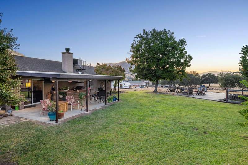 Original owners! This exceptional property showcases breathtaking views, pride of ownership, and thoughtful upgrades. The backyard is an entertainer's delight, featuring an outdoor kitchen, fire pit, string lights, garden beds, and mature trees lovingly planted by the sellers. Inside, enjoy a commercial-grade stove, large ceiling fans, and an updated primary bath. A 4th bedroom, currently used as laundry/storage, can easily be converted back. Recently painted interior and exterior.Practical enhancements include a permitted 26x28 shop (12 ft. walls, newer roof), garden shed, a high-producing 23 GPM well with filtration system, and an upgraded 1,500-gallon septic with convenient clean-outs. Gated fencing, French drain, and a seasonal creek add both function and charm. Located in a Fire Wise Community with secure PG&E power access, this property seamlessly combines comfort, utility, and outdoor living.