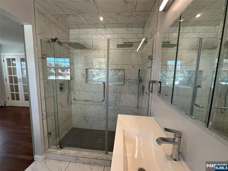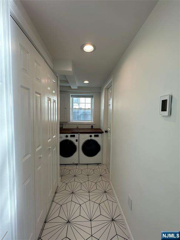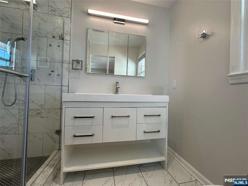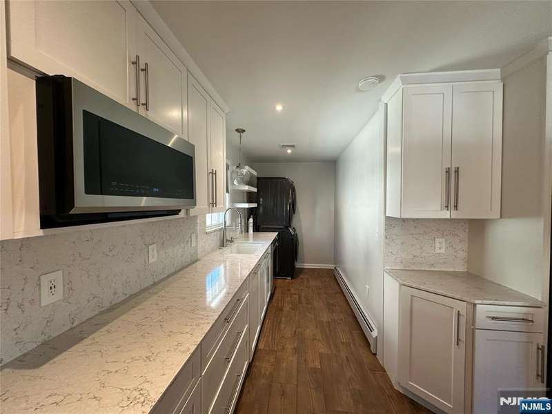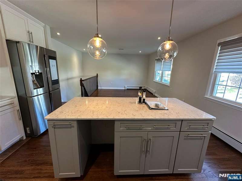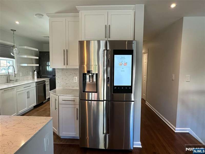 Welcome to this freshly painted and well-maintained 3-bedroom, 3-bathroom home on a quiet residential street in Bergenfield. The main level features an open kitchen living area that creates a warm and inviting flow, perfect for everyday living and entertaining. Bedrooms are well-proportioned and include built-in Elfa closet systems for efficient storage. A finished lower level serves as a bonus living area, complete with a full bathroom, washer and dryer, and a kitchenette, with direct access to the fenced-in backyard ideal for extended living, guests, or gatherings. Additional highlights include central AC, an attached heated garage with its own thermostat for flexible use, a 2-car wide paved driveway, a sprinkler system with lawn maintenance in place, solar panels for energy efficiency, and a Tesla charger already installed. This home blends comfort, thoughtful updates, and modern amenities in a prime location close to schools, parks, shopping, and NYC transportation. Truly move-in ready!