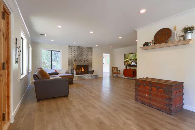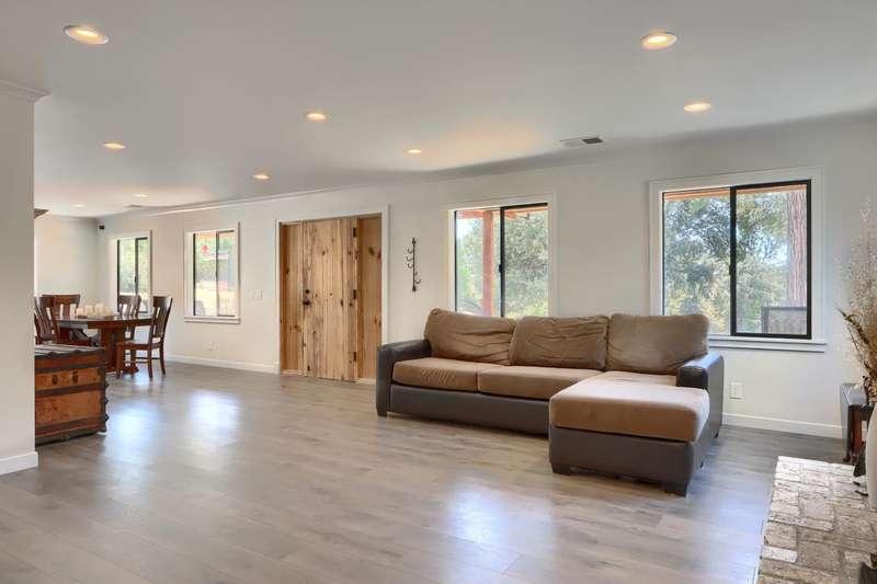 Turn Key Craftsman Style Home on nearly 10 acres with seasonal creek and pond. This property is what everyone is looking for; completely renovated, open concept living space, private yet conveniently located off of paved road and no CC&Rs. The open-concept living space welcomes you with light-filled rooms and thoughtful details throughout. The home has undergone a complete renovation with care and craftsmanship at every turn. The kitchen features sleek quartz countertops, stainless steel appliances, and a custom island. Kitchen range hood and kitchen island are constructed with wood finishes harvested right from the property itself and the same artisan touch carries through the trim work, and bathroom vanity. Each bedroom has its own sliding glass door to the expansive back deck, where evenings under the stars are simply magical. Nature lovers will appreciate the magnificent mountain views, the seasonal stream cascading over granite boulders into a peaceful pond as well as the mix of towering pines, cedars, oaks, and vibrant redbuds. The land also offers an established garden area with fruit trees, perfect for homesteading or hobby gardening. Whether you're searching for a vacation rental, mountain retreat, or full-time family home, this property truly checks every box.