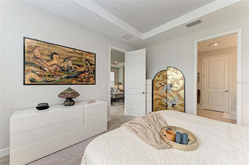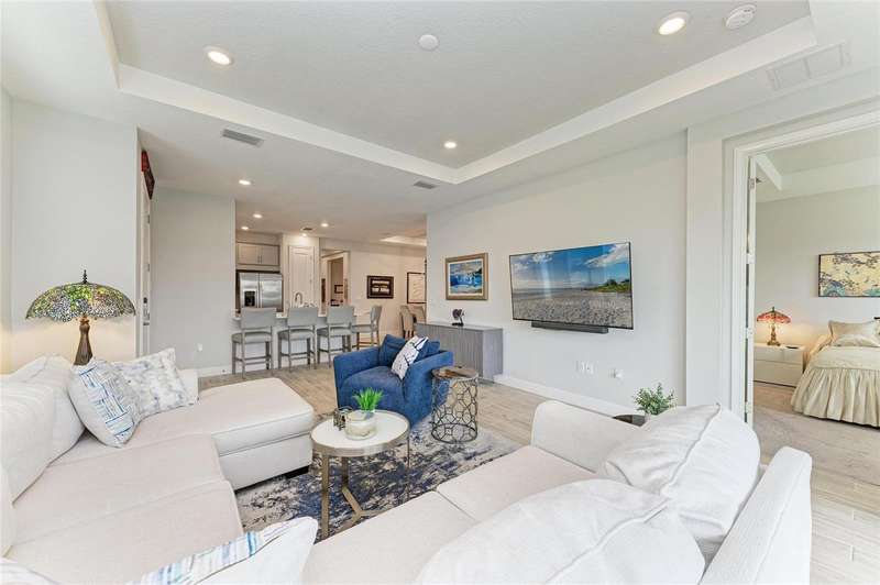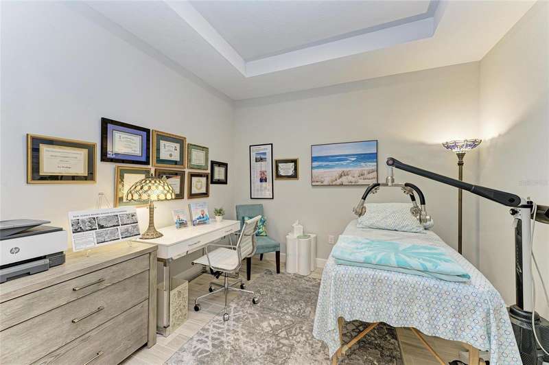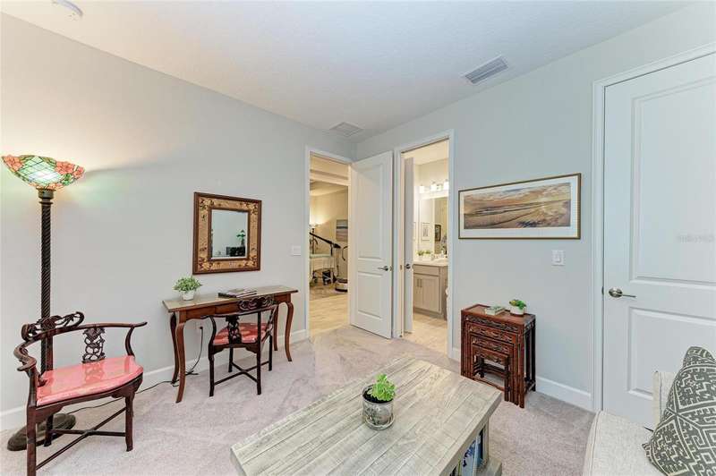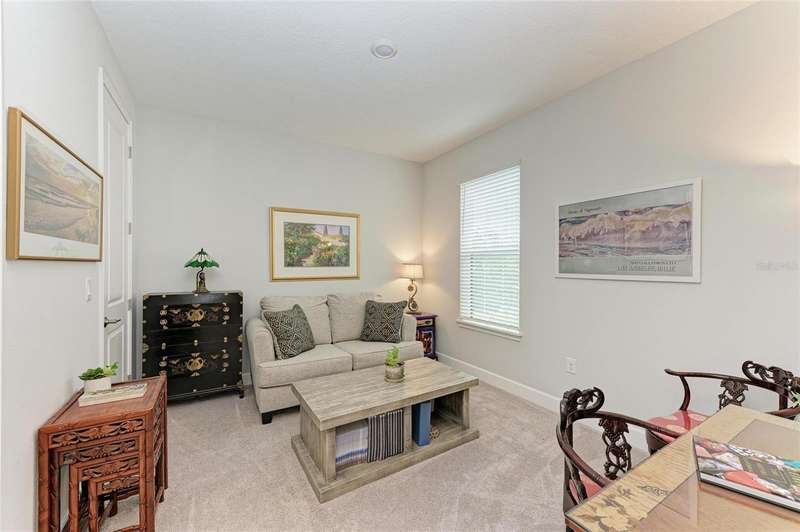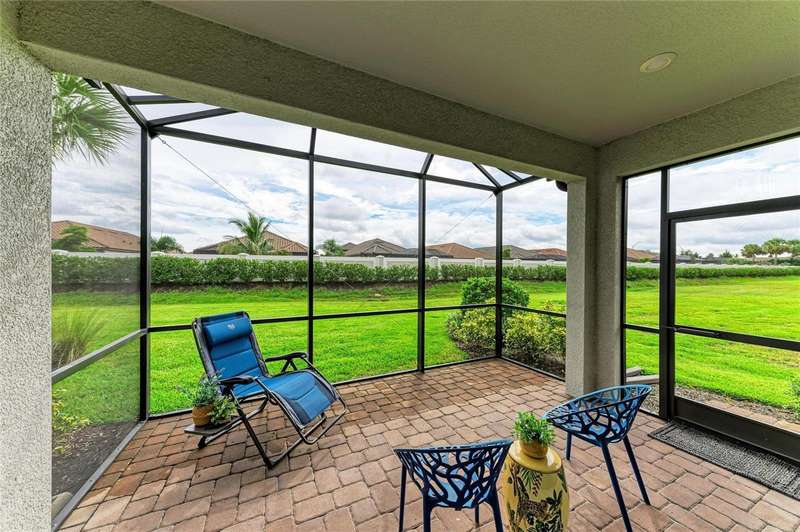 Under contract-accepting backup offers. Welcome to this beautifully upgraded and meticulously maintained Ibis Twin Villa in the gated, maintenance-free community of Esplanade at Azario Lakewood Ranch—part of the nation’s #1 master-planned community. Featuring 2 bedrooms, 2 bathrooms, a versatile study/office, and a 2-car garage with a newly upgraded epoxy floor, this home sits on a premium lot offering privacy and tranquil views with no neighbors overlooking your backyard. Inside, elegant details enhance every space: four tray ceilings, 8’ interior doors, and plank tile flooring flow throughout. The gourmet kitchen shines with upgraded gray cabinetry, quartz countertops, stainless steel appliances, and a designer tile backsplash. An open-concept design connects the kitchen, dining, and great room, creating the perfect space for both everyday living and entertaining for family and friends. The primary suite, tucked at the rear of the home, provides a peaceful retreat with expansive windows, a generous walk-in closet, and a spa-inspired ensuite featuring dual sinks and a walk-in shower. At the front, a secondary bedroom with its own walk-in closet and en-suite full bath is perfect for guests. A well-designed study/office with classy pocket doors offer privacy and versatility for guests, hobbies, or a home office. The spacious laundry room is conveniently located and comes complete with an upgraded and stylish laundry/utility sink. Step through sliding doors to the screened lanai, where serene views and ample space invite you to relax, entertain, or even plan for a future pool or spa. Esplanade at Azario offers world-class amenities designed to enrich every day. Stay active with the state-of-the-art fitness center, aerobics classes, scenic walking trails, pickleball and tennis courts, and the 18-hole championship golf course. For relaxation, enjoy the heated resort-style pool, Vitality Park, fire pits, or a treatment at the full-service spa. The Culinary Center offers fine dining, wine tastings, and cooking classes, while The Venue hosts clubs and community events. Socialize at the Bahama Bar, explore Azario’s large divided large/small dog park, or simply unwind in your own backyard sanctuary with the more private satellite pool located steps away with its fire pit and grill. Conveniently located near top-rated schools, shopping, dining, and just a short drive to the Gulf Coast’s award-winning beaches, Esplanade at Azario Lakewood Ranch offers a lifestyle where every day feels like a vacation. Whether you’re seeking refined design, modern upgrades, or the perfect active Florida lifestyle, 4741 Tortona Ct delivers it all-and more!