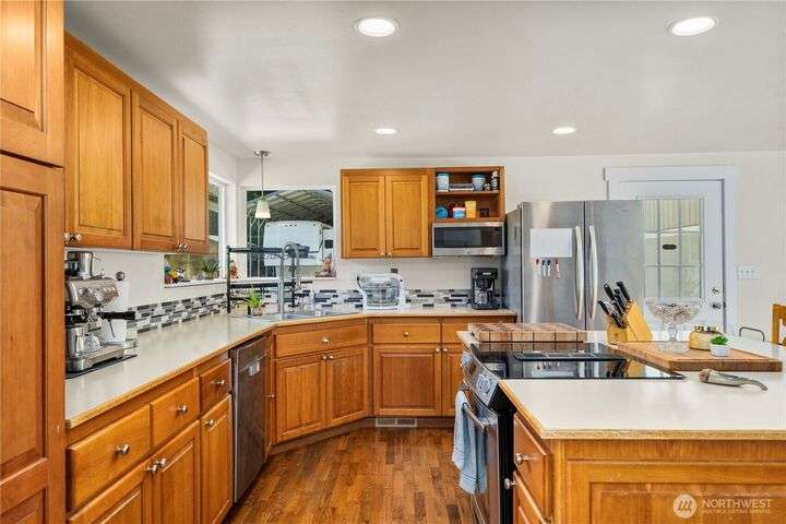 Endless possibilities with the perfect blend of space, comfort, and natural beauty on this expansive 5.8 acre property! Updated one-level home features 3 bedrooms and 1.5 bathrooms with a bright and open great room layout that’s perfect for both everyday living and entertaining. The generously sized kitchen with stainless steel appliances provides ample counter space and storage, making it a central hub for cooking and gathering. Hardwood floors add warmth and charm throughout the main living areas. Step outside through the oversized glass sliding door and embrace the tranquility of your own backyard oasis complete with outbuildings and fruit trees. Located within a short distance to the scenic Cedar River, local trails, and Tahoma Schools.