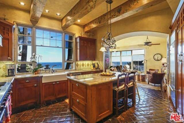 Incredible Lease! BLUFF ESTATE ON POINT DUME: This incredible property has it all; Panoramic Ocean Views, steps to Beach, lighted Tennis, Basketball & Pickleball Court, Pool & Spa plus TWO Guest Houses. Enter through impressive wooden security gates through a lushly landscaped entry with circular motor-Court. A stone path leads to a magnificent glass & wood front door. Interior features include a formal dining room, a sky lighted living room with massive fireplace and 18 foot ceilings, a gourmet kitchen with informal dining & sitting room overlooking the Pool, Spa and gardens for the ultimate in indoor/outdoor entertaining. All Bedrooms in the main house are "en suite" and have whitewater views. The square footage does not include the two guest houses. This property has Private stairs to Westward Beach. AVAILABLE July 12. Price change reflects the summer rate.