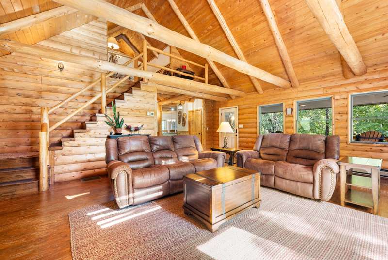 Charming Log Home in the Coveted Ski Mountain Acres Community ? Blowing Rock, NCNestled on an exceptional 1.41-acre lot in the highly desirable Ski Mountain Acres neighborhood, this authentic 3-bedroom, 3.5-bath log home offers timeless mountain charm and versatile living potential?ideal as a primary residence, second home, or vacation rental.Inside, the home welcomes you with vaulted ceilings, exposed log cross beams, hardwood floors in common areas, and a striking stone fireplace that creates a warm, inviting atmosphere in the Great Room?perfect for cozy mountain evenings.The main level features a spacious living room, dining area, well-appointed kitchen, half bath, mudroom, laundry, and a generous primary suite with en-suite bath?providing convenient one-level living.Upstairs, a vaulted open sitting area/loft offers flexible use as a reading nook or office space, along with two spacious bedrooms that share a full bath.The walk-out lower level includes a large finished common area, full bath, and ample space for a family room, bunk room, or game area?with plenty of improvement potential to suit your needs. The original garage has been converted into additional storage space, but could be reimagined if desired.Step outside to enjoy the covered rocking chair front porch, wraparound deck, and a gently sloping, usable yard with a fire pit?ideal for outdoor entertaining or relaxing after a day in the mountains.With ample parking from two driveways, this well-located mountain retreat is just minutes from the heart of downtown Blowing Rock and convenient to ski slopes, hiking, and Blue Ridge Parkway adventures.Don't miss this rare opportunity to own a true log home in one of Blowing Rock's most sought-after communities.