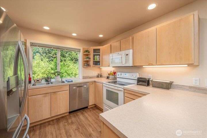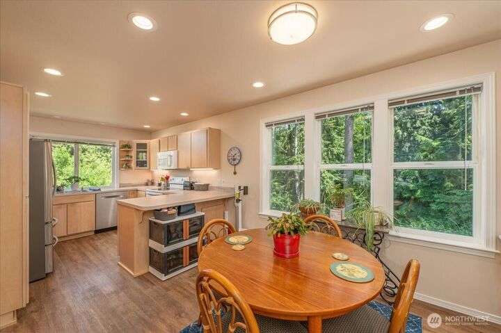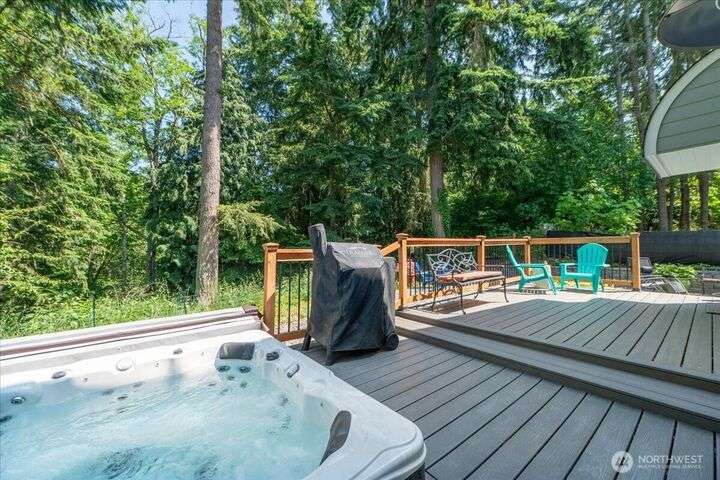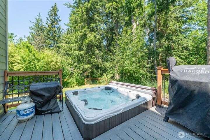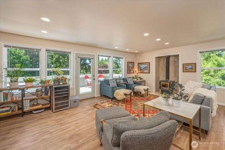 **Island Paradise Awaits!** Wake up to vacation vibes daily in this stunning custom-built home on nearly 3/4 acre of West side tranquility. Entertain friends on the expansive lower deck or unwind in your private hot tub retreat. The heart of the home features a bright, flowing kitchen/dining/living area with abundant natural light and cozy wood-burning stove for peaceful evenings. Your primary suite boasts breathtaking sunset views from the private balcony, plus spa-like ensuite bath and double closets. Two additional bedrooms, full bath, and versatile rec room with endless possibilities. Complete with 2-car garage and convenient laundry. Turnkey ready or make it uniquely yours. NO HOA restrictions! Your daily vacation life starts here.