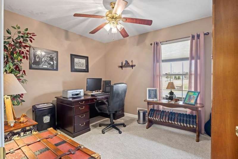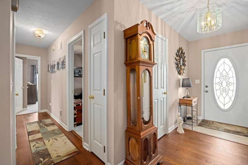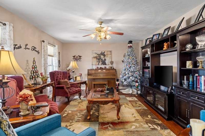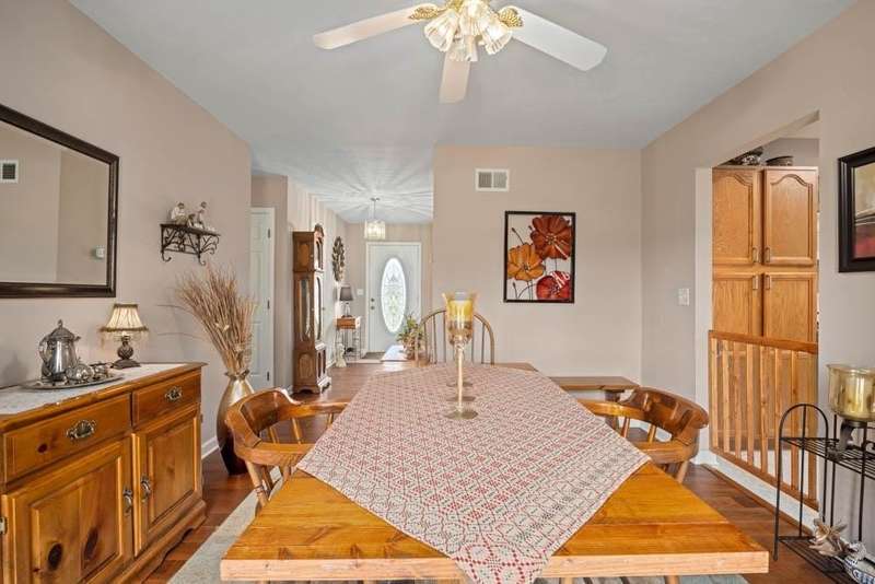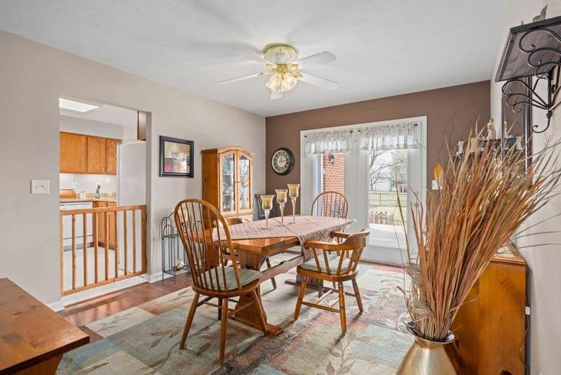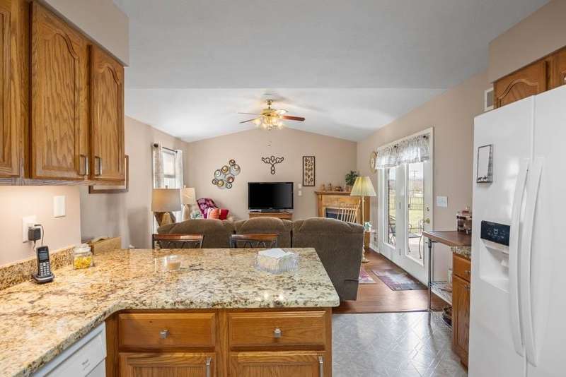 Dressed in country charm this beautiful and immaculately cared for 3 bedroom, 2 bath home is ready for the red carpet tour. Perfect palette colors enhance the Seller's thoughtful and creative upgrades. Host family gatherings in the spacious living and dining room with new hardwood floors. Other features include equipped kitchen with granite countertops and a family room with gas fireplace New roof (2022)with new gutter and gutter guards. New fence around the patio. The massive oversized garage has plenty of space for your vehicles and more. Additional 2 new rooms downstairs with new floor and ceilings. You will love the wood shop in the basement with added 60 amp breaker box and related receptacles. New light switches and receptacles. Curtain and valances do not convey . Seller will leave all blinds . New Heat pump(2025) Located on a gorgeous 0.65 landscaped acre lot. Lovely views!