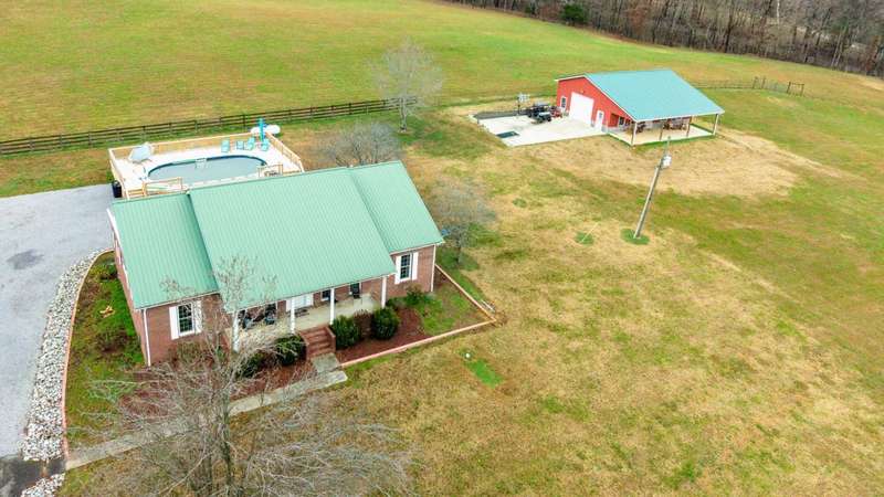 Welcome to your dream home! This stunning property features three bedrooms, 2.5 baths, a dedicated office, beautifully situated along a creek. The outdoor space includes a new above-ground pool and deck, perfect for summer relaxation and entertaining. A remarkable 30 x 40 building offers what is currently being used as a fantastic sports bar area and garage on other half complete with an 8-foot porch that runs the length of the building, adding to its charm. Enjoy the convenience of a temperature-controlled horse barn with spacious stables, catering to equestrian enthusiasts, along with extra outdoor storage buildings for all your needs. Set atop a beautiful hill, the property is partially fenced and located in a sought-after area, providing both privacy and stunning views. This home combines comfort, luxury, and functionality, making it perfect for families, outdoor lovers, or anyone looking for a serene retreat. Don't miss the opportunity to make this exceptional property your new home!