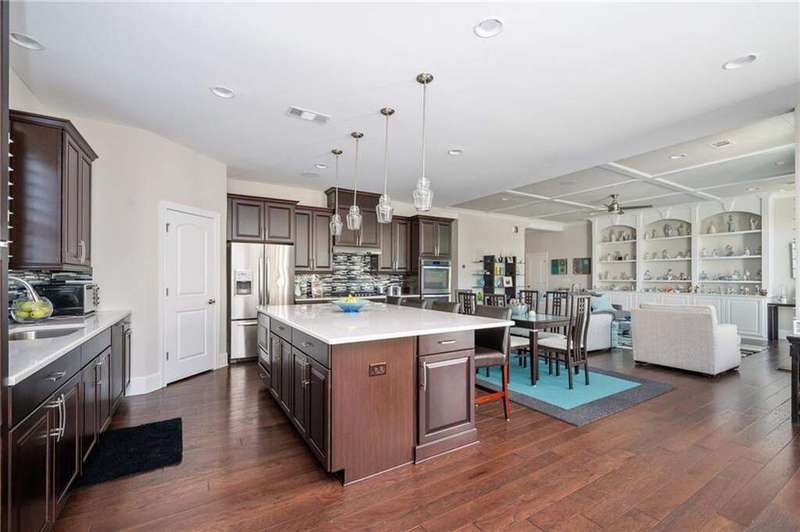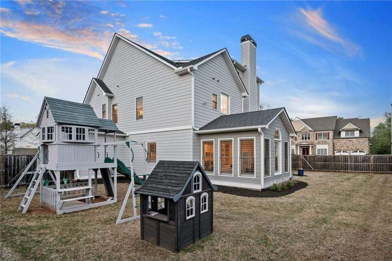 Luxury, Location & Lifestyle in the Heart of Smyrna. Welcome to this exceptional custom-designed O'Dwyer-built home, perfectly positioned in the sought-after Tackett Farms community. Built in 2016, this meticulously maintained three-level residence offers over 4,000 square feet of elevated living space, blending timeless design, modern functionality, and top-tier upgrades for the ultimate in comfort and convenience. From the moment you arrive, the home's custom front porch, classic architecture, and professionally landscaped exterior make a striking first impression. Inside, you're greeted by an elegant, open-concept layout filled with natural light and enhanced by hardwood floors that flow throughout both the main and second levels, plantation shutters, and a sound system throughout that sets the perfect ambiance. At the heart of the home lies an upgraded chef's kitchen, equipped with stainless steel appliances, a five-burner gas cooktop, warming drawer, double ovens, quartz countertops, walk-in pantry, and a spacious breakfast bar-designed to accommodate both casual family meals and lively gatherings. Step into the sunroom and soak in the peaceful views of the private backyard, a tranquil space perfect for enjoying your morning coffee or curling up with a book. This residence boasts seven generously sized bedrooms and five full bathrooms three of which have quartz countertops, including a guest suite on the main level for added flexibility along with a flex room that is perfect for a home office. The oversized primary suite is a true retreat, complete with a private sitting area, dual walk-in closets, and a spa-inspired en-suite bathroom featuring a soaking tub, double vanity, and separate walk-in shower. The third-floor media room adds an extra layer of versatility, complete with a full bath and closet perfect for a home theater, recreation room, or guest retreat. Additional highlights include a three-car garage, two water heaters, and beautifully integrated indoor/outdoor living areas ideal for entertaining or relaxing in style. Tackett Farms offers a warm, welcoming neighborhood atmosphere with its green space, playground, fireplace and covered gazebo, all just steps away. Enjoy the convenience of being minutes from King Springs Elementary, as well as a variety of dining, shopping, and entertainment options in vibrant Smyrna. This is a rare opportunity to own a thoughtfully upgraded, move-in-ready home in one of Smyrna's most desirable communities. Schedule your private showing today and experience the perfect blend of luxury, comfort, and community living.