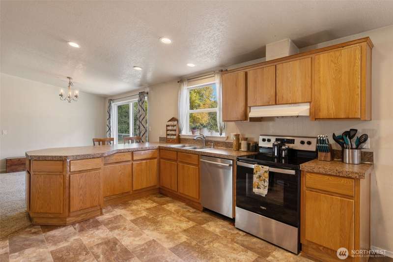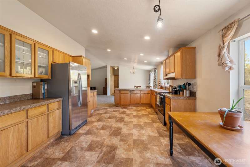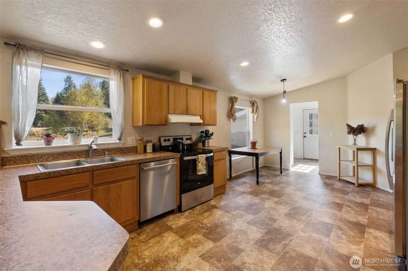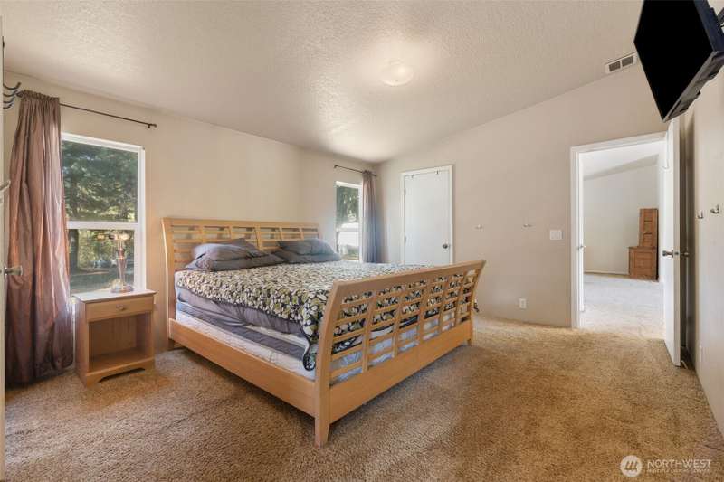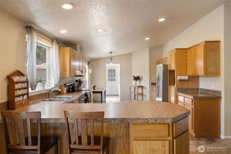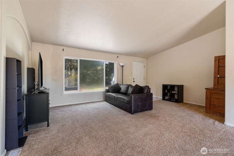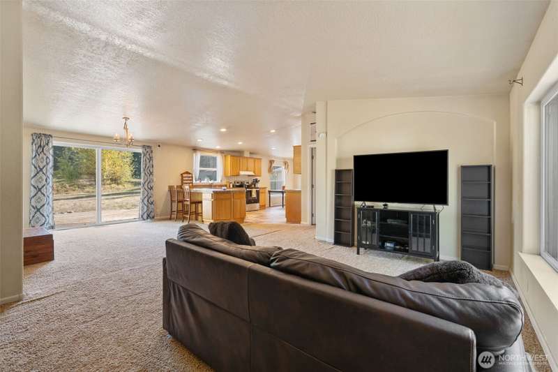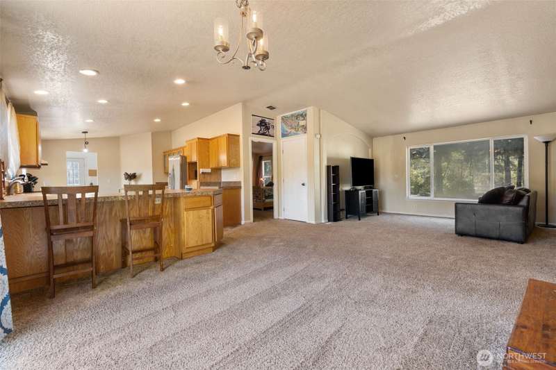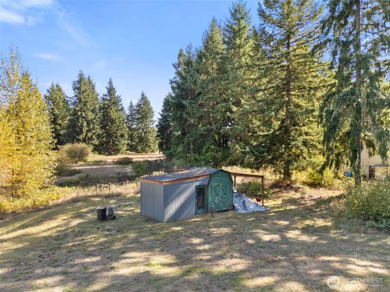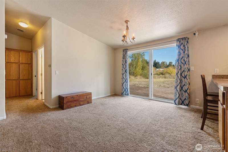 Country Comfort on 3.36 acres in Yelm! Spacious 3-bedroom, 2-bath manufactured home, offering 1,620 sq. ft. with a split-bedroom floor plan, large kitchen with tons of storage, spacious living room and open concept dining area. Primary bedroom includes extra space for office or sitting area, plus a corner soaking tub in the primary bathroom. Enjoy year-round comfort with a heat pump and relax on the two large decks—front and back, perfect for soaking in the peaceful setting. The 28x36 propane-heated shop provides plenty of room for storage, hobbies, or projects. Lot includes RV parking with hook-ups. With room to set up for animals, this property offers space, functionality, and country charm, all ready for its new owner!