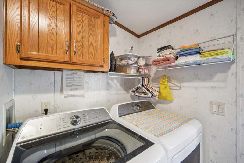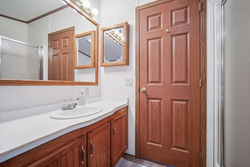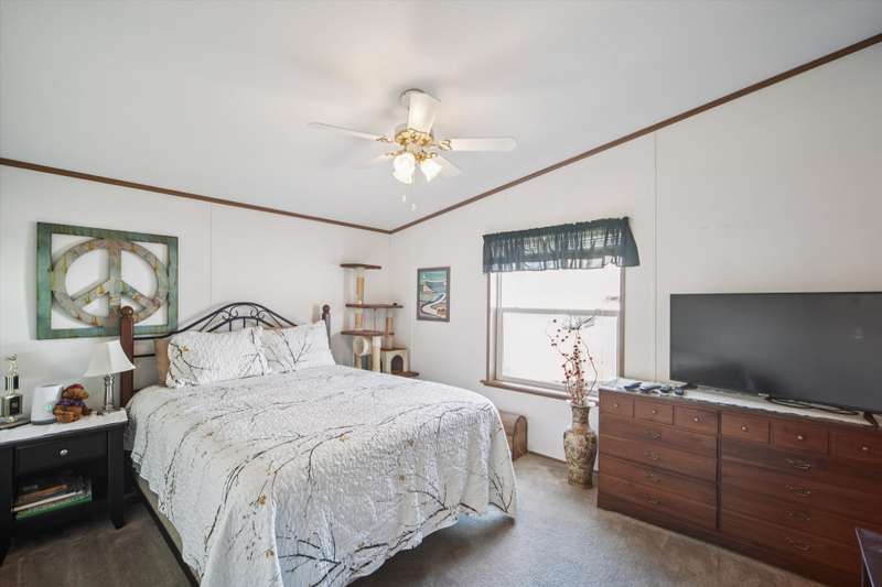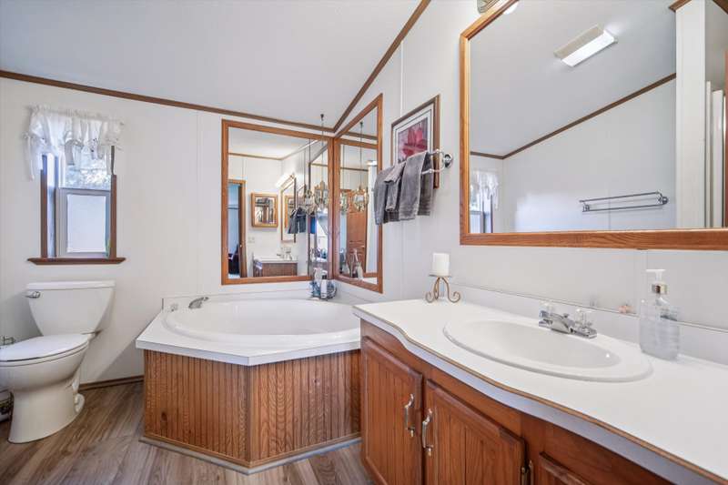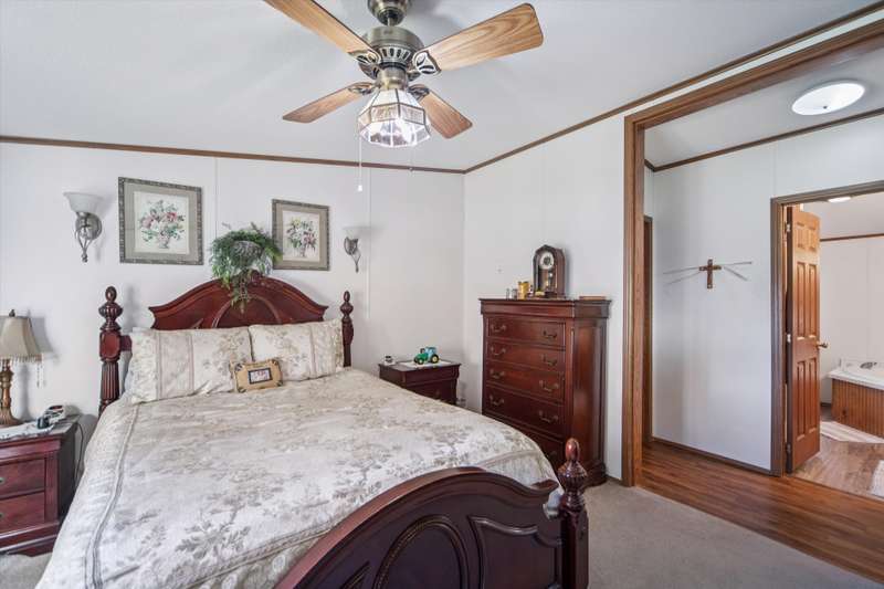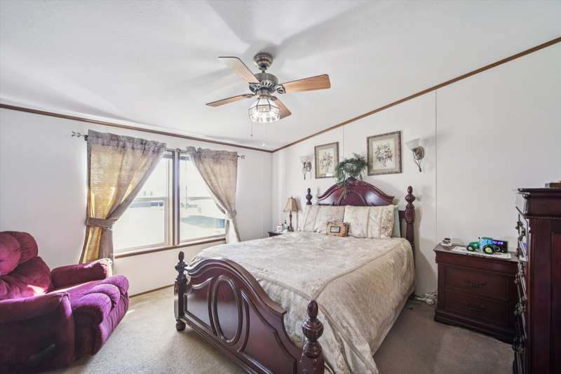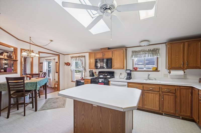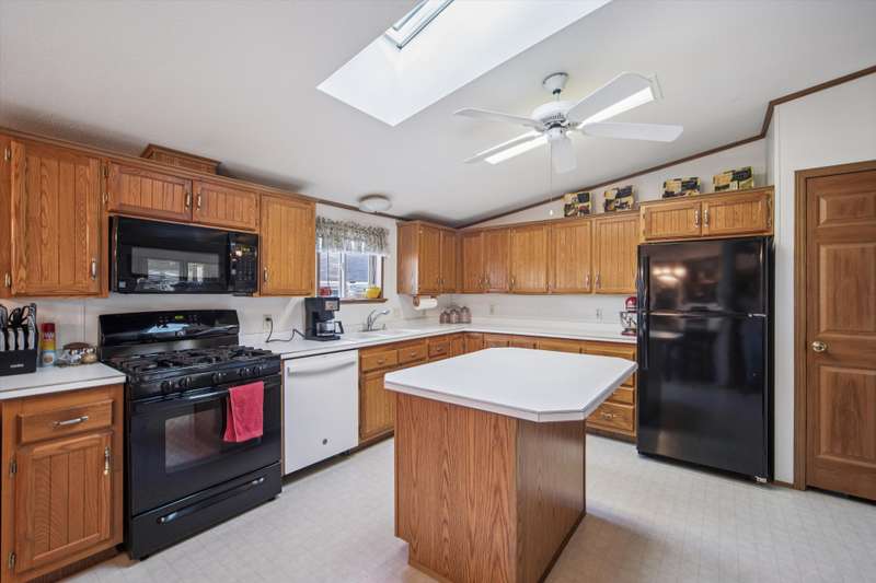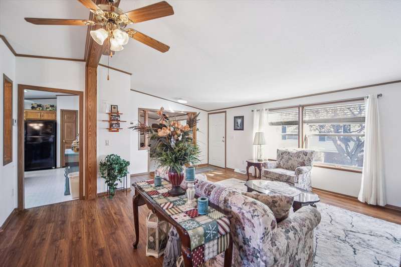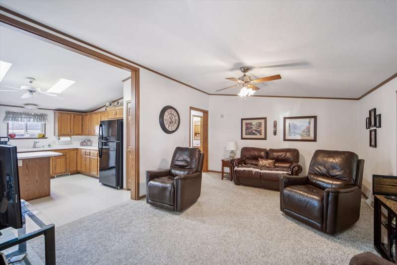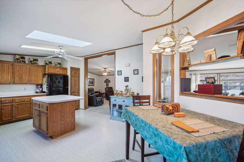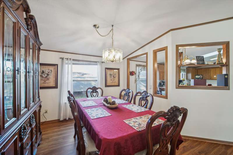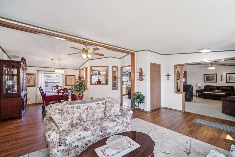 This great mobile home offers just over 1900 sq. ft. and has a sunroom surrounded with windows. Walk in to the entryway open to the spacious living room and formal dining room. Large family room for extra family space. Nice sized kitchen with island and eating area, all appliances included. Primary bedroom has a private entrance. Large bath with soaking tub and separate shower. 4 X 16 walk in closet and a vaulted open bedroom area. Two nice sized family bedrooms both with walk-in closets. Full hall bath. Laundry room incl washer/dryer. Nice oversized 2 car garage. Don't miss touring this home!