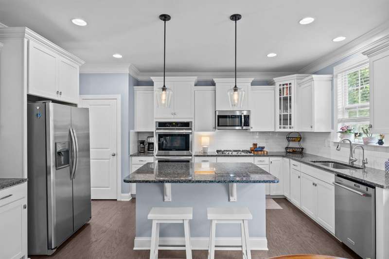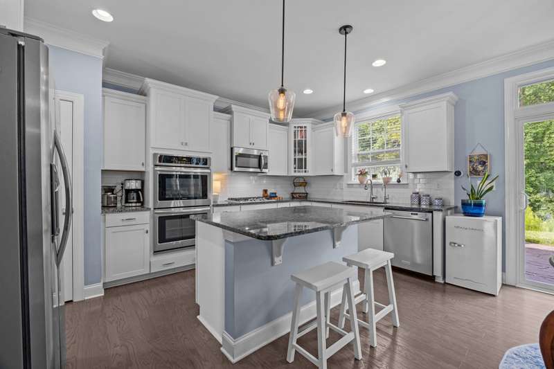Experience elegant living in this upgraded 5BR + bonus, 4BA home with a 3-car garage, perfectly positioned on a private, tree-lined lot in a prestigious Lake Norman waterfront community. From the designer kitchen with granite countertops, white cabinetry, and double ovens, to the spacious primary suite with a spa-like bathroom & its own living room, every detail is crafted for comfort and sophistication. Enjoy seamless indoor-outdoor living with an oversized stone patio and pergola overlooking a tranquil natural area. Main-level guest suite, wide-plank LVP floors, and high-end finishes throughout. Walk to the lake, pool, clubhouse, playground, and kayak launch. Lake, lifestyle, and location all in one. Additions: New dishwasher in 2024, current termite bond in place, whole house water softening system and sink filters, Reme Halo whole home in-duct air purifier, patio pavers re-sanded and sealed in May, whole house exterior pressure washed. Assumable VA Loan 3.5%