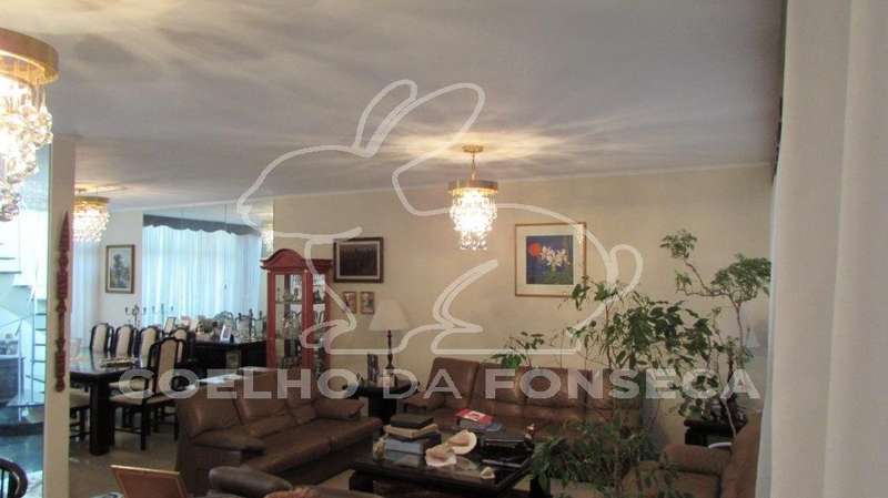 Ampla sala, lavabo, copa, cozinha, escritório, lavanderia, banheiro de serviço e jardim de inverno de 21 m² (além da área construída) com cobertura de vidro climatizado