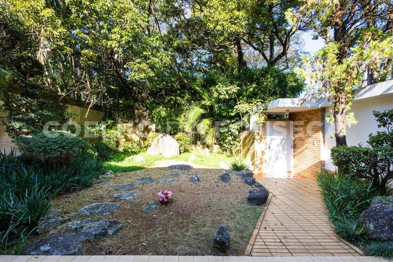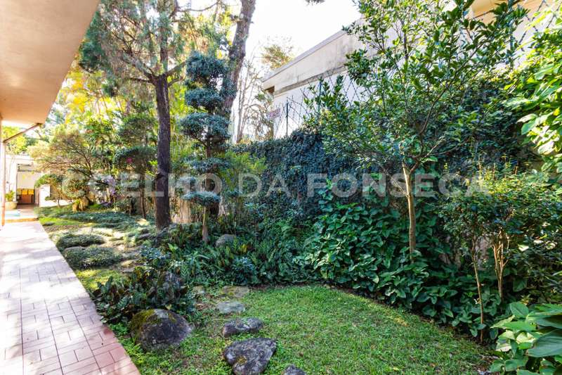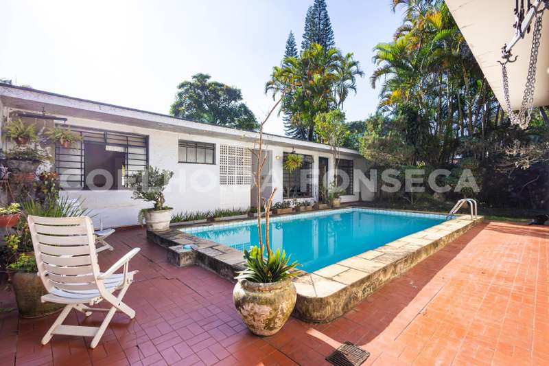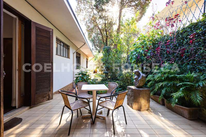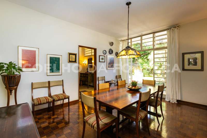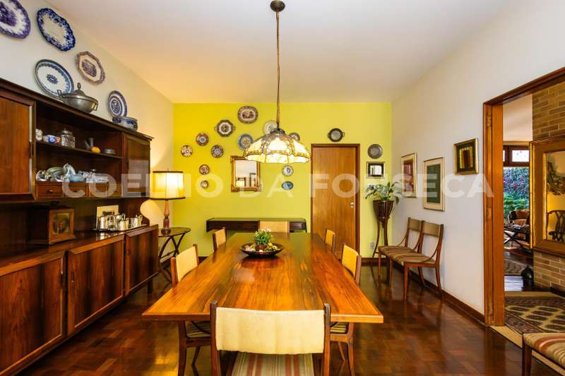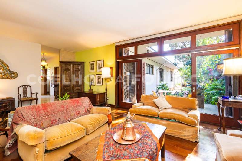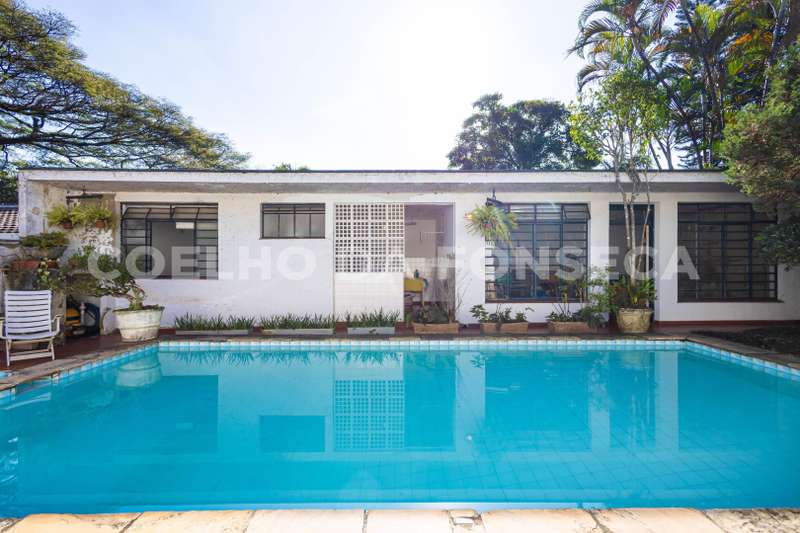 Casa térrea, concebida nos anos 60 projetada pelo arquiteto Carmine Coppola, com ambientes integrados ao jardim por portas altas de vidro. Ambientes espaçosos e com muita luminosidade, uma lareira aconchegante na sala de estar que tem a vista para o jardim lateral, escritório e sala de jantar que dão de frente para o jardim dianteiro. Quatro dormitórios sendo uma suite com amplo closet, uma cozinha e copa espaçosas, garagem para 2 ou 3 carros, piscina, lavanderia e um salão de jogos.