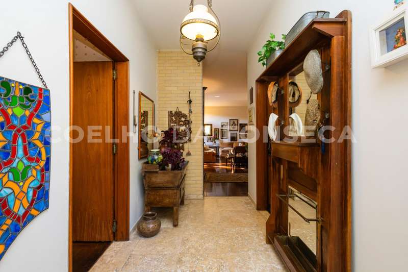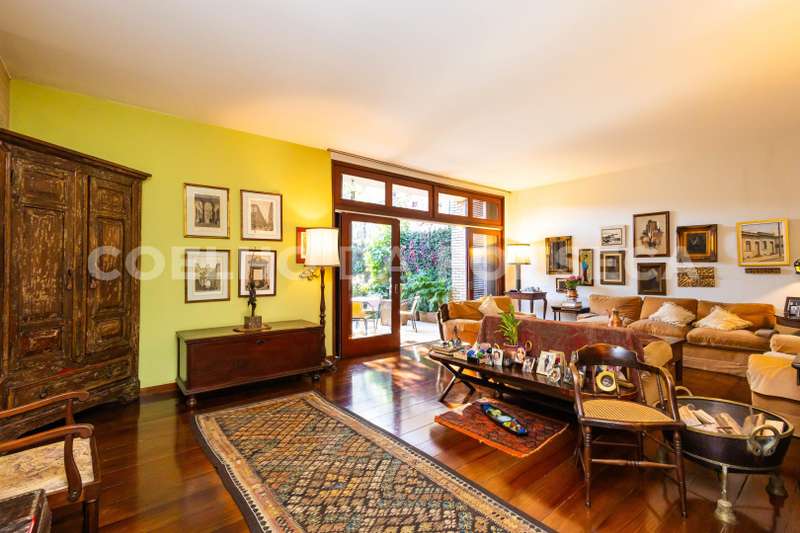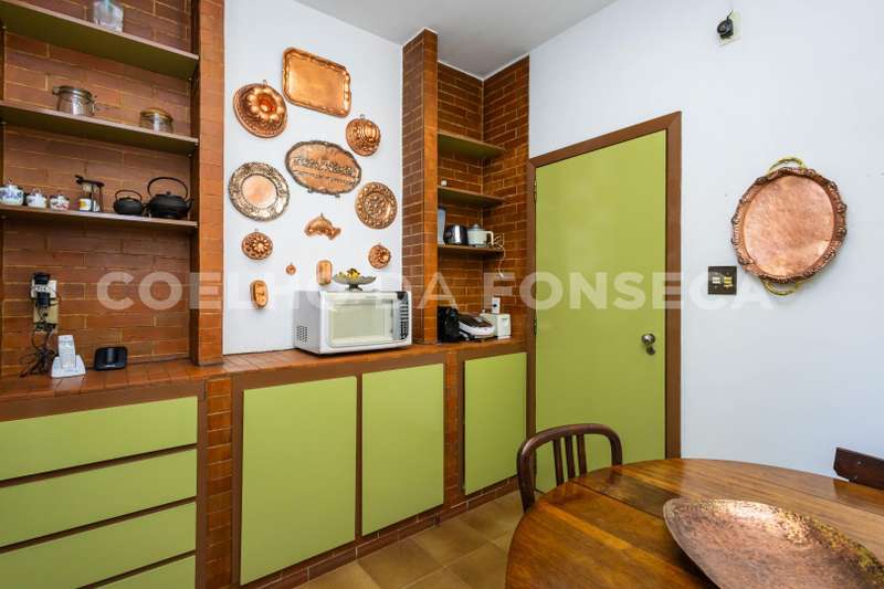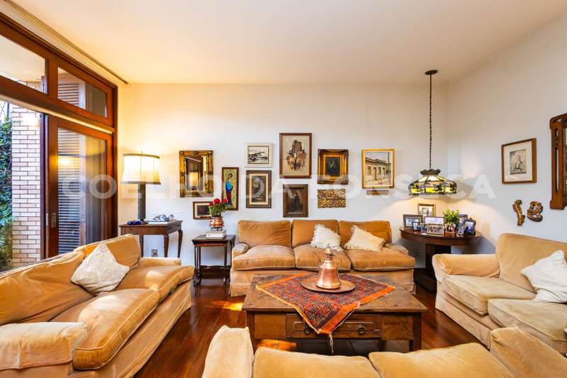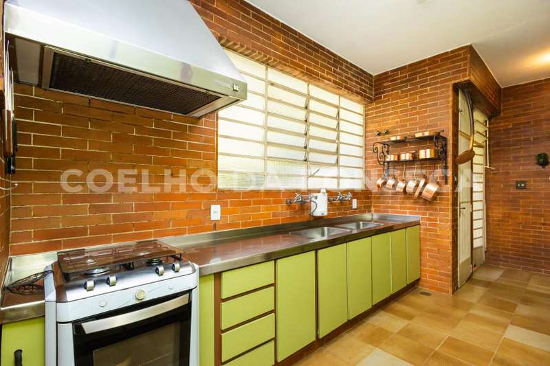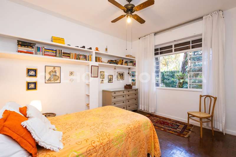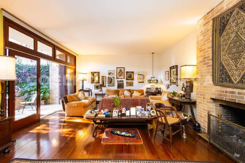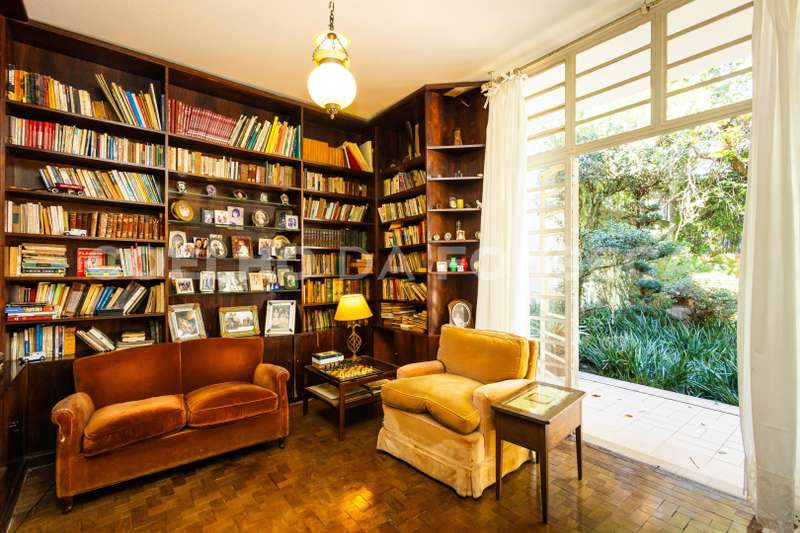 Casa térrea, concebida nos anos 60 projetada pelo arquiteto Carmine Coppola, com ambientes integrados ao jardim por portas altas de vidro. Ambientes espaçosos e com muita luminosidade, uma lareira aconchegante na sala de estar que tem a vista para o jardim lateral, escritório e sala de jantar que dão de frente para o jardim dianteiro. Quatro dormitórios sendo uma suite com amplo closet, uma cozinha e copa espaçosas, garagem para 2 ou 3 carros, piscina, lavanderia e um salão de jogos.