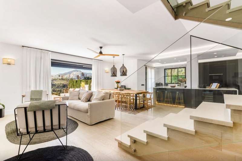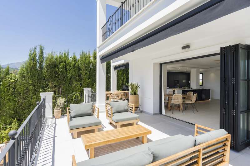 This exquisite six-bedroom villa, Villa Karma, is located within the exclusive gated community of Puerto Del Capitán, perfectly situated just minutes from the sought-after areas of Benahavis, Marbella, and Puerto Banus. Offering a privileged location at the end of a peaceful cul-de-sac, the villa ensures added privacy and tranquillity. It provides easy access to world-class amenities, luxurious dining experiences, designer shopping districts, and some of the Costa del Sol’s most prestigious golf courses, including Los Arqueros, La Quinta, El Higueral, Guadalmina, and Los Naranjos. For golf enthusiasts, this is a dream location, combining convenience with breathtaking views of the surrounding landscape. Adding to the allure of the neighbourhood, the community features a guard on duty daily from 7 PM to 7 AM, offering residents exceptional security and peace of mind. Originally built in 2005, Villa Karma has recently undergone a complete transformation, refurbished to the highest luxury