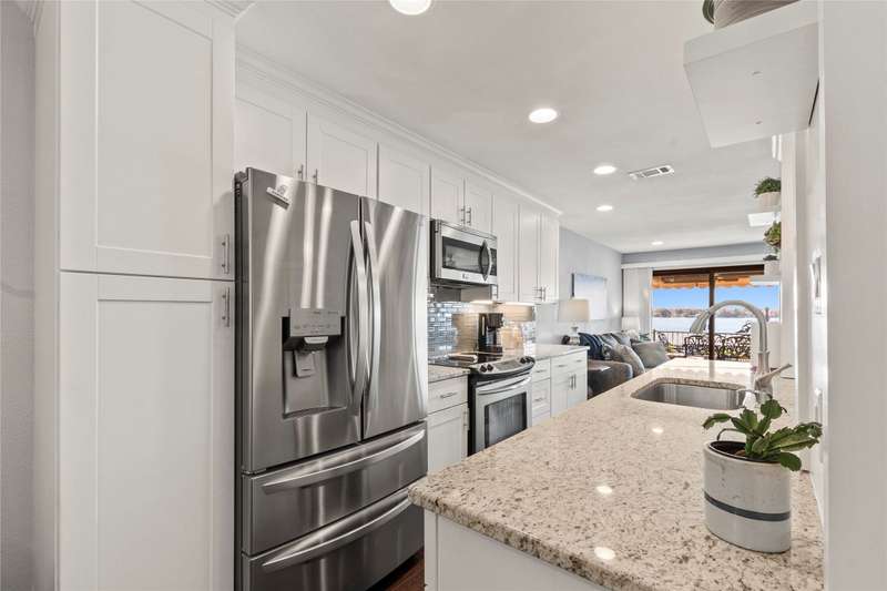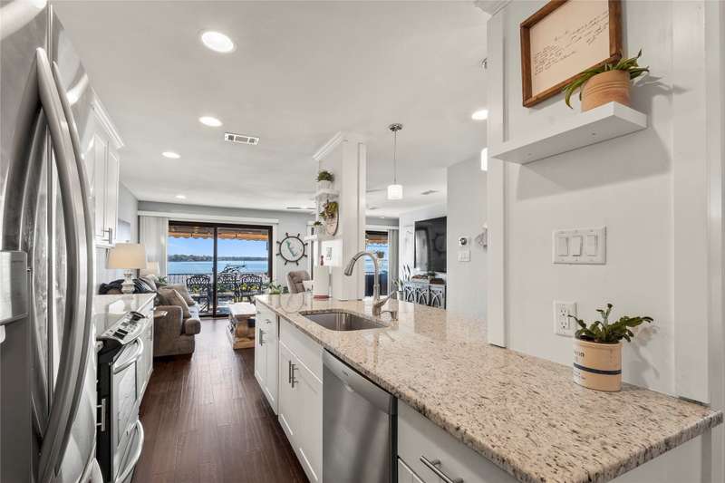 MOTIVATED SELLER!!! Great value on the lake for under $300,000! It will be hard to find anything else on the lake this nice on wide open water with a deep water boatslip at this price! Beautifully remodeled condo with extended 12 x 29 ft. patio balcony with electric awning and wood look tile floor. This unit has a larger living space than most of the other units and attic space for storage. Kitchen updated with white shaker cabinets, granite countertops, pantry, bar seating, convection oven and Bosch dishwasher. Open concept living with bamboo floors, bar area and large sliding doors showcasing the water view. Laundry and utility closet enclosed with lovely barn doors holds full size side by side or stackable washer and dryer. Unit comes with boatlip #27 in boathouse newly built 2022. Includes one covered parking space. Balcony awning automatically retracts when it becomes too windy. Best of all the community pool, building and grounds maintenance is covered by your HOA dues so you can enjoy the lake lifestyle and let others do the work. New roof July 2025! Conveniently located in Gun Barrel City on Cedar Creek Lake close to restaurants, stores and more. Short and long term rentals prohibited.