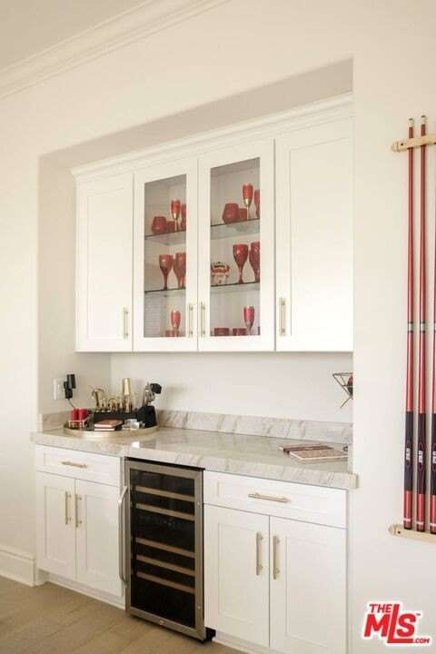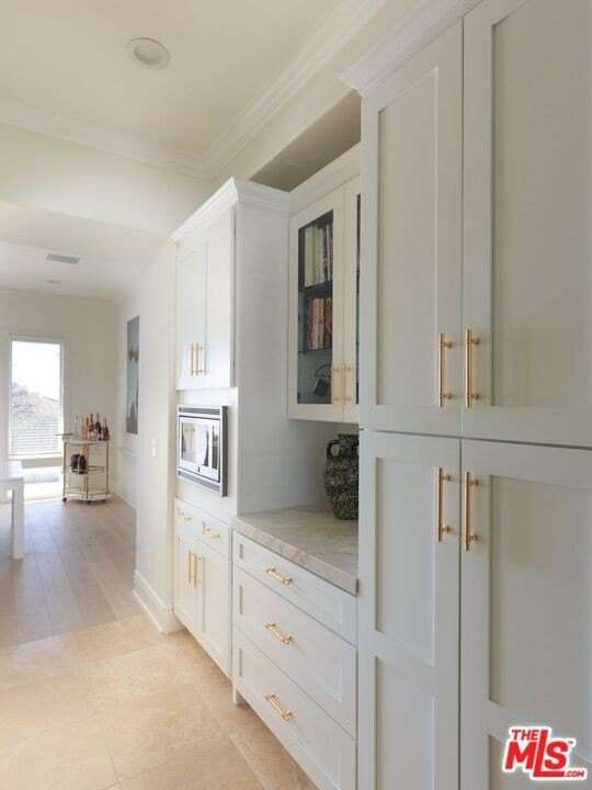 Post-fire, all of the properties on this street are still standing. Ideally situated at the end of a gated cul-de-sac, this 4,583 square foot residence in The Peninsula at Palisades Highlands community has been thoughtfully and extensively updated. With four bedrooms, bonus room, and five bathrooms, this stunning residence has something for everyone. On the first floor is an en-suite bedroom, a bonus room ideal for use as a theater room or home gym, and an oversized laundry room. The second level is bright and open, with an elegant family room, living room with picture windows and high ceilings, and a formal dining room with a dry-bar, new cabinets, wine-cooler, and French doors that open up to a balcony perfect for watching sunsets. The kitchen has been beautifully updated with new cabinets, Quartzite island and countertops, Sub-Zero fridge, and plenty of storage space. A newly landscaped backyard with a complete outdoor kitchen and barbecue make for easy entertaining and dining al-fresco. Find a large primary bedroom suite on the third floor, and a spa-like bathroom with soaking tub, ocean views, dual vanities and a large, walk-in shower. Enjoy two more en-suite bedrooms, plus an open office. ADDITIONAL FEATURES AND UPGRADES: new European oak hardwood flooring, elevator, oversized four-car garage with direct access, Nest thermostat and cameras, Mul-T-Lock high security locks, top-of-the-line hardwired security system, new chandeliers and light dimmers, new exterior paint, new exterior timed lights, and new window blinds throughout. Enjoy access to private multi-acre Summit club which grants entry into pool, spa, gym, tennis court, and plentiful other recreational facilities. Minutes away from Palisades Village shopping center.