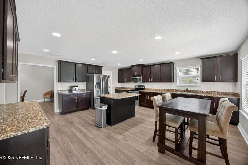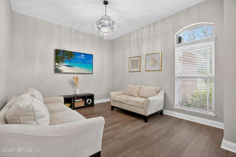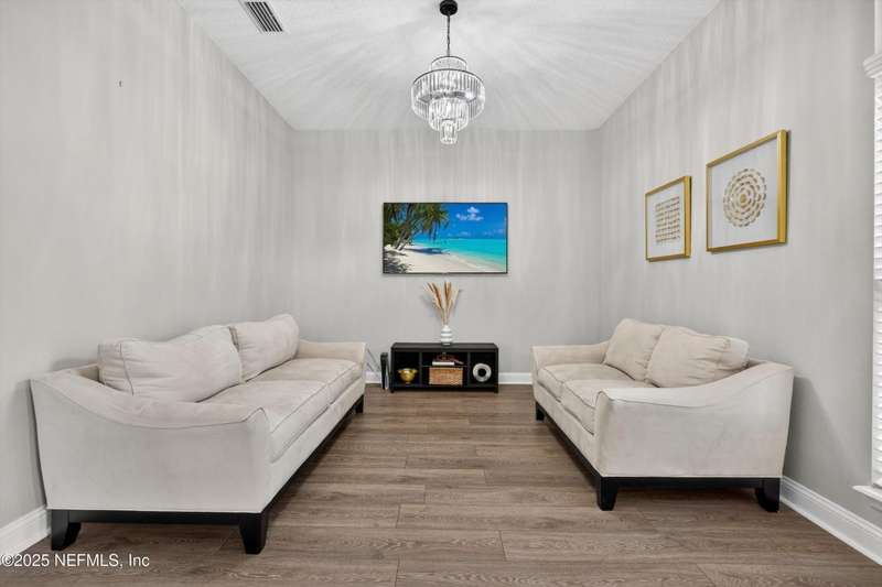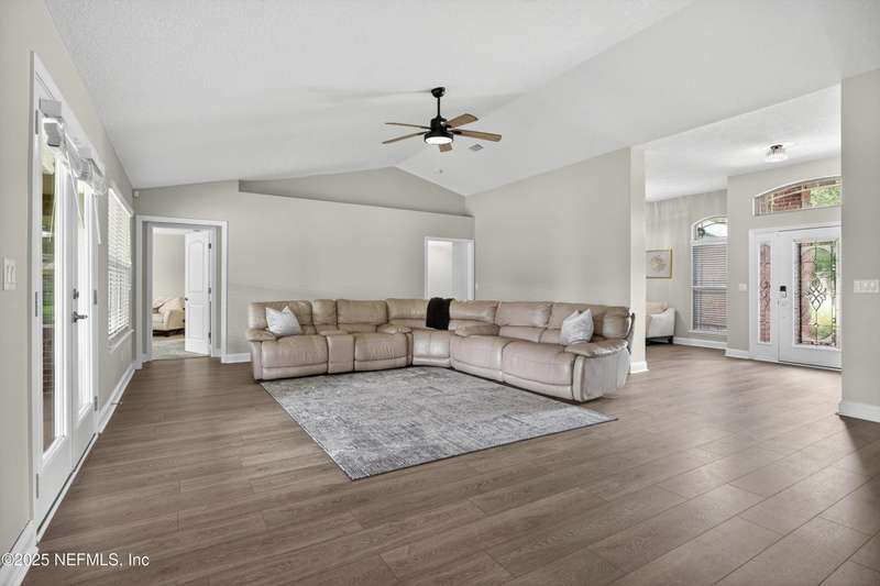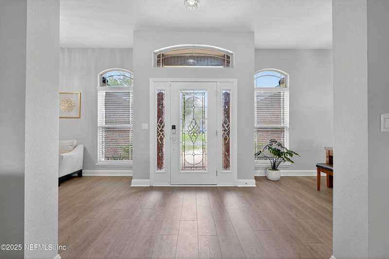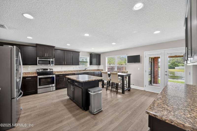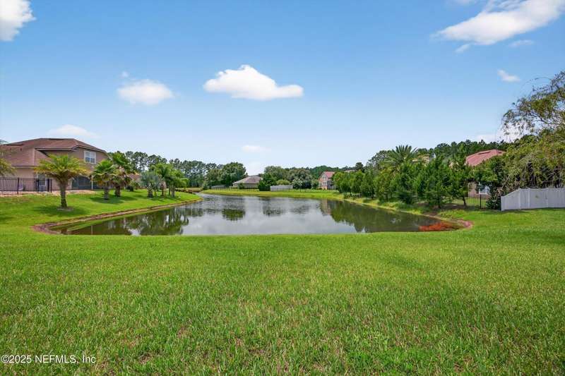Discover this beautifully maintained 4-bedroom, 2-bath brick home in Dawson's Creek, set on a tranquil waterfront lot. Enjoy formal living and dining rooms, plus a spacious kitchen with ample cabinets, stainless steel appliances, a prep island, and generous counter space. The breakfast nook and large family room make gatherings easy and comfortable. Two sets of French doors open to a screened lanai with peaceful water views perfect for relaxing. The primary suite features a Roman tub, walk-in shower, and dual vanities. Three additional bedrooms offer flexibility for family or guests. With its stylish finishes and prime location, this home offers comfort, elegance, scenic living, low HOA fees and NO CDD fees. Welcome Home...