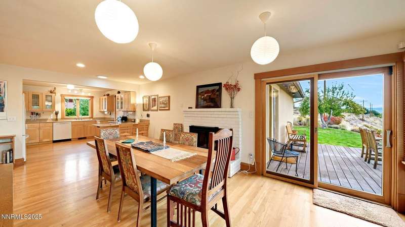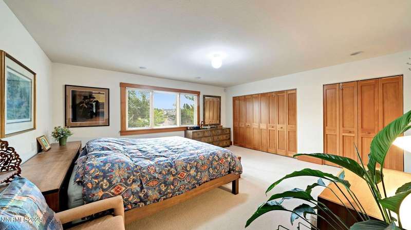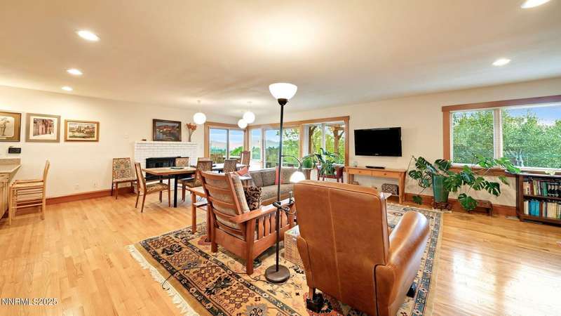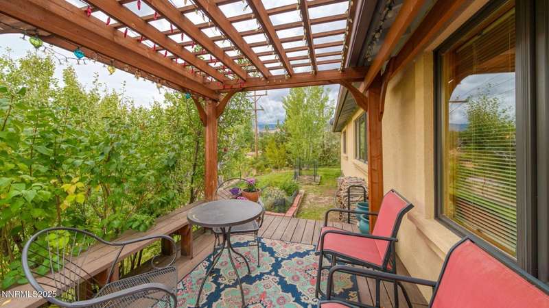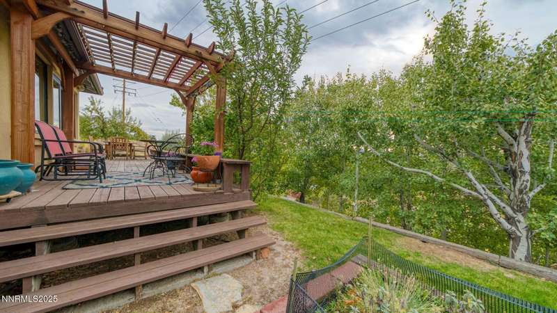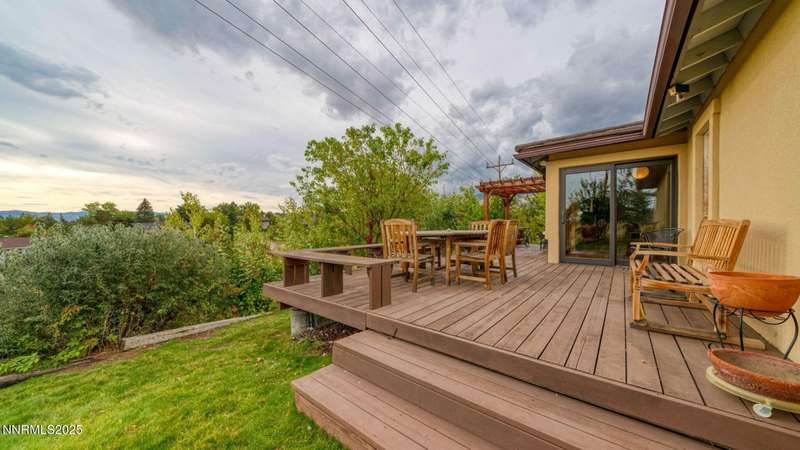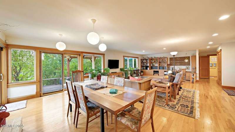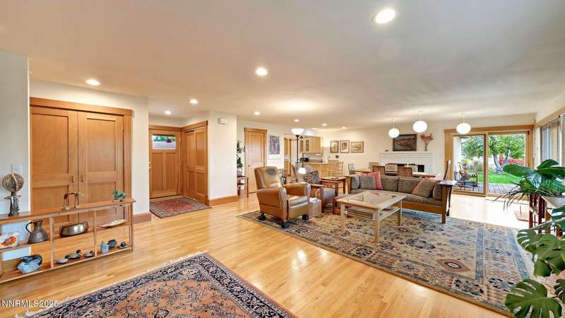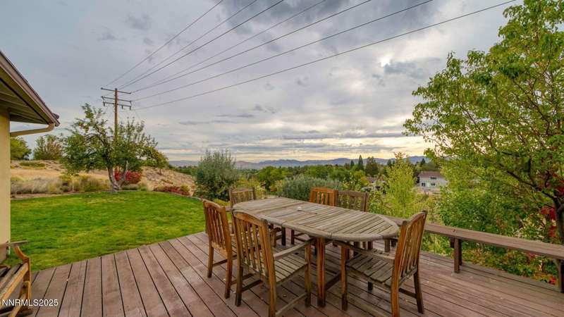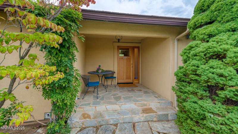 Discover the perfect blend of sustainability, comfort, and timeless design in this beautifully updated 2 bed, 2 bath single-story home, offering 1,810 sqft of light-filled living on a private, tree-lined 1-acre lot in desirable Southwest Reno. Thoughtfully upgraded with solar panels and an electric vehicle charging station, this home supports a low-impact lifestyle without compromising style or convenience. Step inside to find an inviting interior bathed in natural light from custom wood Pella windows. Warm solid oak wood flooring runs throughout the main living areas and kitchen, complemented by 5 solid hemlock fir wood trim and baseboards, solid hemlock fir wood doors, custom solid wood book cases, and custom quarter sawn white oak bathroom vanities-every detail speaks to quality craftsmanship. The updated kitchen with pantry and wine cellar and updated bathrooms offer modern style with timeless appeal, making this home truly move-in ready. Enjoy quiet mornings or evening gatherings on the expansive cedar deck with views of the city and mountains - no rear neighbors to disturb the serene setting. The home's orientation and thoughtful landscaping provide exceptional privacy with plenty of space for a potential ADU-perfect for a guest house, rental unit, or multigenerational living. Located in one of Southwest Reno's most sought-after neighborhoods, this rare gem is more than a home-it's a long-term investment in your lifestyle, your values, and your future.