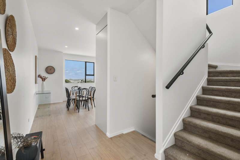 Land Area: 81sqm, Floor Area: 148sqm, CV 2024: $1,130,000. Freehold title, no body corporate fee. This luxurious, sun-drenched home is situated on a flat, fenced private lot, finished to the highest standards with easy living in mind. There's nothing left to do but move in and enjoy. The beautiful deck and backyard are the perfect spots to unwind in the privacy of the low-maintenance, manicured gardens, providing ample space for children to play. Ideal for summer entertaining, barbecues, and relaxation, this property was built to create lasting memories. The spacious interior allows you to fully appreciate its beautiful and comfortable design. Featuring a stunning contemporary layout, the home offers two generous open-plan living and kitchen areas. The three large bedrooms and two bathrooms provide space and privacy for everyone, while a functional, dedicated laundry room is conveniently located on the ground floor. Convenience meets comfort with easy access to public transportation, Albany Mall, local amenities, and motorways. Located in sought-after school zones, including Rangitoto College, Murrays Bay Intermediate, and School, it's just a short walk up the walkway to the schools and shops. Don't hesitate, as beautiful family homes like this one, situated in a central location and at an affordable price, are hard to come by. Discover why this little-known cul-de-sac could be one of the best-kept secrets. You simply must view this stunning property. Please note that while the suburb of Pinehill is used for convenience in searching for the property, the actual suburb is Rosedale. The photos used in this listing are of similar units and are for illustrative purposes only.
