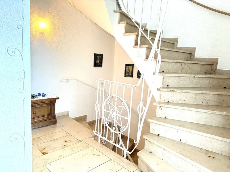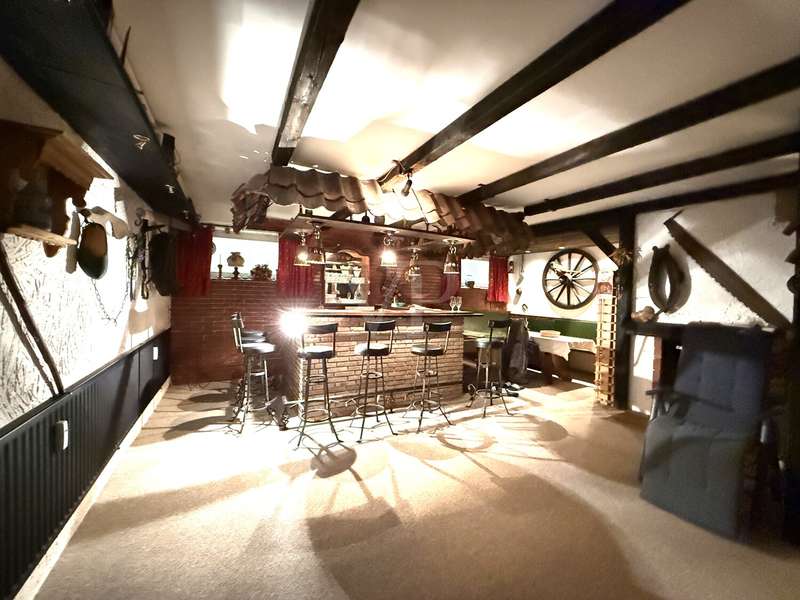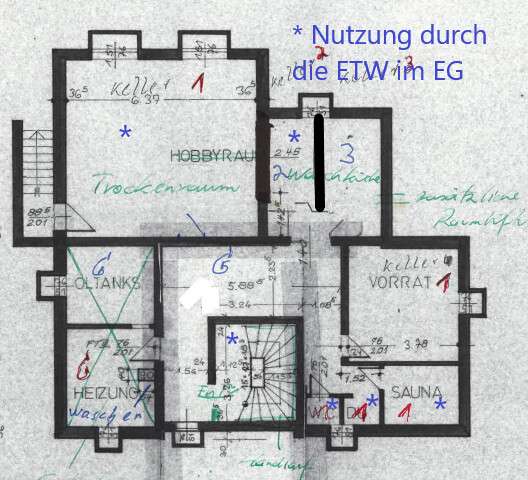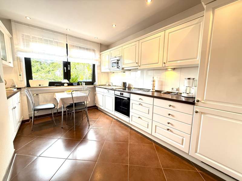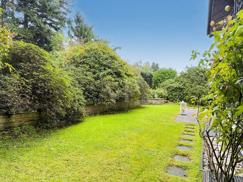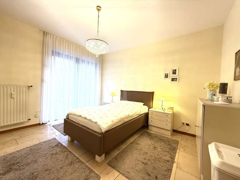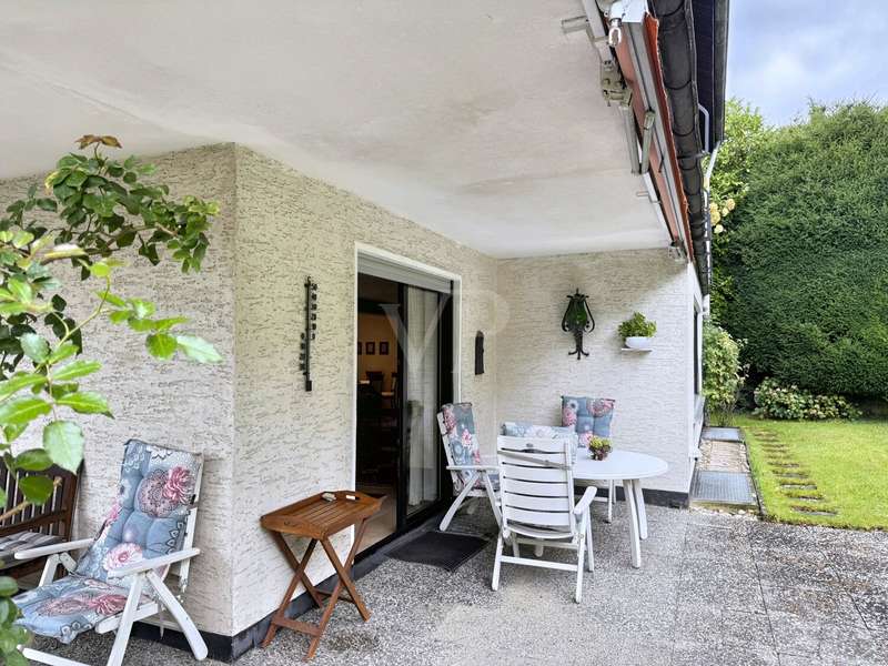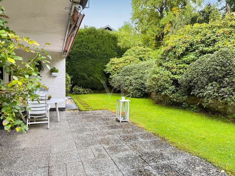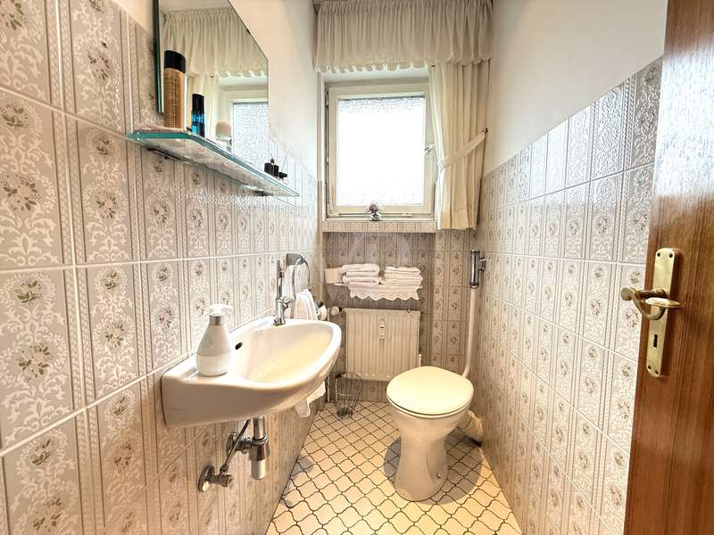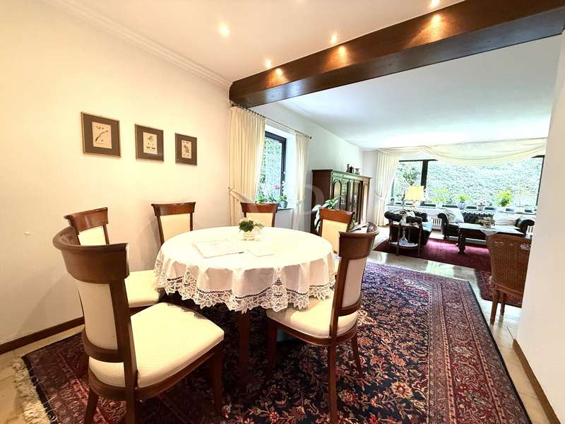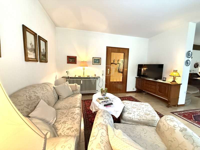 Welcome to this well-kept first floor apartment built in 1972 with a living space of approx. 136 m². You enter your new home via an extremely spacious hallway, which offers plenty of space for wardrobe furniture and/or cupboards. The apartment has a total of four spacious rooms, which offer you a variety of uses. The focal point of the property is the light-flooded living room, which offers enough space for a cozy living area. The open-plan design creates a pleasant transition between the living and dining areas. Recessed spotlights provide atmospheric lighting and contribute to a cozy ambience. From here, you have direct access to the private garden area with mature trees, which invites you to linger. The solid garden shed in the outdoor area opens up further potential uses - whether as a storage room, workshop or retreat for relaxing hours in your own green space. The spacious, south-facing garden with an area of approx. 958 m² is located on a leasehold plot, for which €77.87 per month must be paid. The use of the garden area is the sole responsibility of the owner of this apartment. The bedroom is in a quiet location and offers enough space for a large closet and other furnishing options. The bathroom offers both a shower and a bathtub as well as a daylight window. The furnishings are designed for comfort and functionality. The condition is well maintained - the design can be individually modernized. There is also a separate guest WC. The space is complemented by a further room that can be used flexibly as a children's room, guest room or study. The kitchen offers sufficient work space as well as storage space for all kitchen appliances and is centrally accessible. High-quality fixtures and practical solutions make cooking a pleasure. A number of special features await you in the spacious basement: In addition to additional basement rooms, a large basement bar offers plenty of space for sociable evenings with family and friends. Another highlight is the separate sauna, the controls of which were renewed in 2022 - an ideal addition for relaxing hours at home. The sauna area naturally also includes a large shower and a WC with washbasin. There is a covered carport for your vehicles, which can easily accommodate two cars. The central oil heating system from 2003 ensures pleasant temperatures in all rooms at any time of year The location of the apartment allows quick access to all amenities and leisure facilities. Shopping facilities, doctors and public transport are all within easy reach. This first floor apartment offers a well-thought-out room layout, modern technical equipment and sufficient space for individual design. Arrange a viewing appointment and see the advantages of this property for yourself. -3 residential units without property management -House rent: €250 / month -Maintenance reserve: €16,500 -Communal laundry room