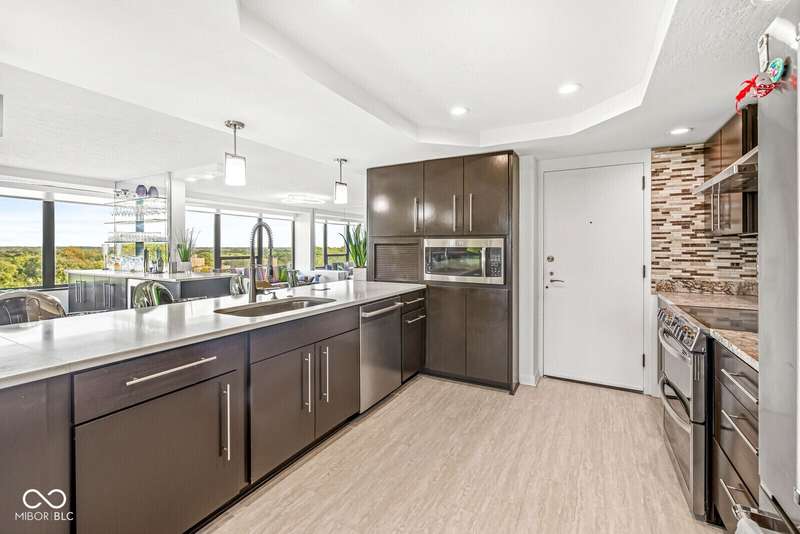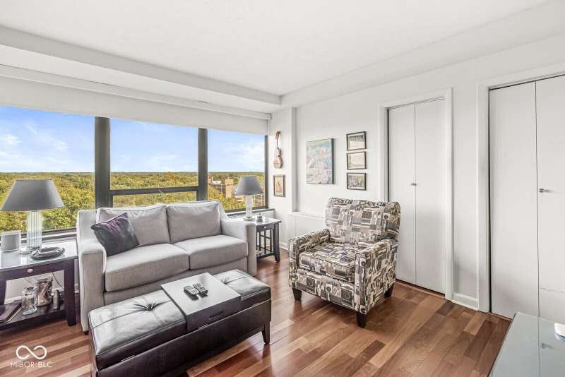 Modern Ranch in the Sky - 4000 N Meridian St, Unit 11DE Perched high above Midtown on the 11th floor, this 2,450 sq ft condominium offers the spaciousness of a ranch home with the ease of maintenance-free living. Flooded with natural light and framed by panoramic treetop views, it's a rare opportunity on prestigious Meridian Street. Step inside to an open-concept layout perfect for entertaining or relaxing. Hardwood floors, three bedrooms, and two full baths deliver comfort and style, while two private balconies extend your living space outdoors. The modern kitchen and flowing design make gatherings effortless, creating a home that feels both expansive and inviting. The building provides amenities that elevate daily living: 24/7 security and concierge, all-inclusive HOA covering 24/7 concierge/security, utilities, cable, and internet, two garage spaces plus basement storage, guest suites, a private conference room, pool, gymnasium, and dog park. Every detail is designed for convenience and peace of mind. Location sets this home apart. Directly across the street, Tarkington Park offers pickleball, tennis, and basketball courts. Arts and culture are just minutes away at Clowes Hall and Newfields, while downtown Indianapolis' vibrant dining and entertainment scene is only 10 minutes from your door. This residence is not for everyone - it's reserved for those who value time, independence, and the privilege of living above it all. Spacious, secure, and maintenance-free, this ranch in the sky is designed for those used to having it all - and for those who've just made it. Private showings available by appointment only.